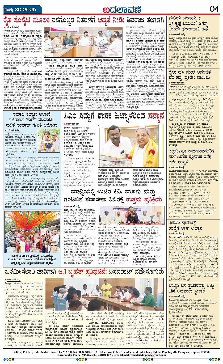 ಬದಲಾವಣೆ 30 JULY 2025 Page: 4 July 30, 2025 << First << 4 >> Last >> Page 1Page 2Page 3Page 4 × ಬದಲಾವಣೆ 30 JULY 2025 page-1page-2page-3page-4 << First << 4 >> Last >> page-1page-2page-3page-4 page-4