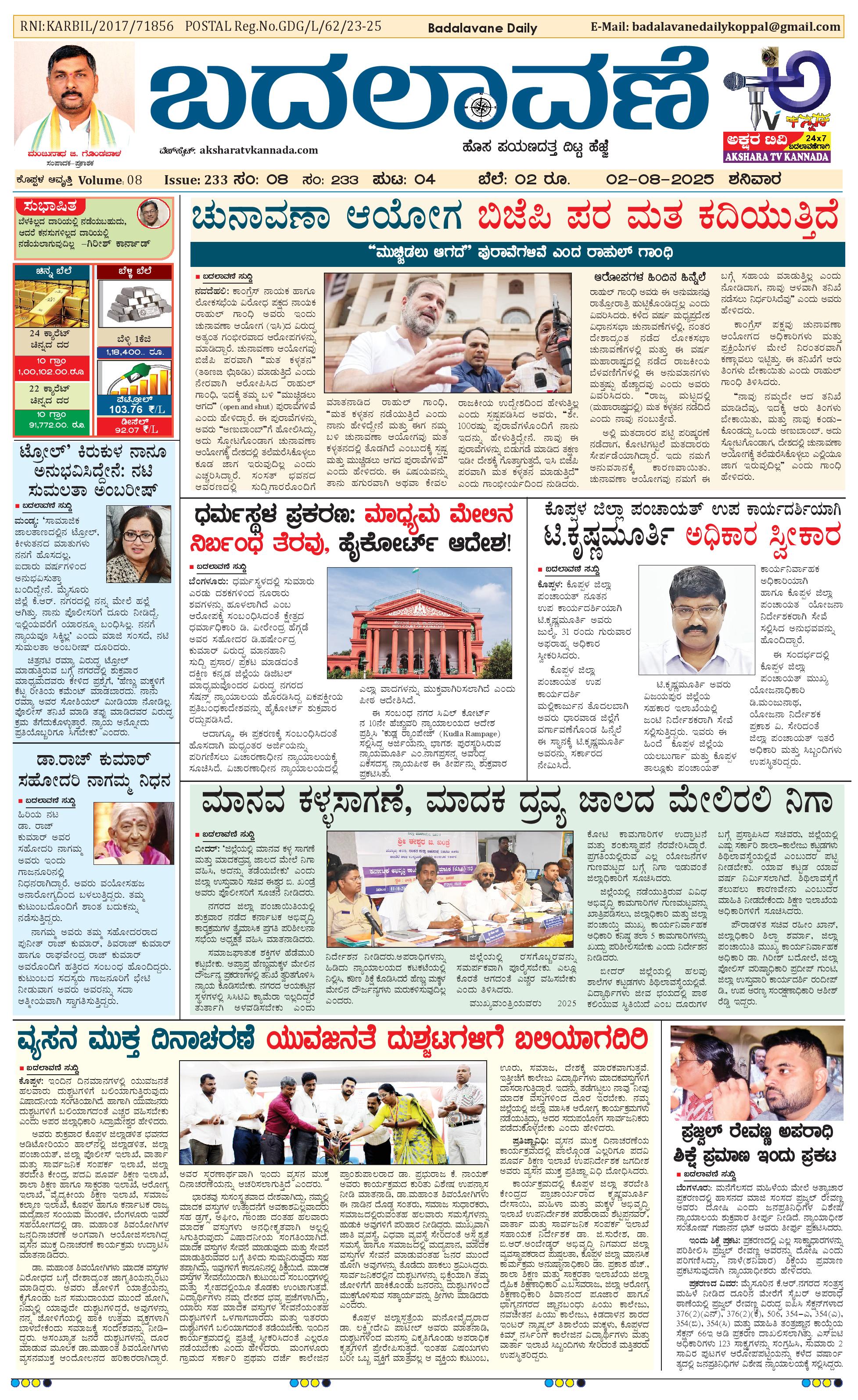 ಬದಲಾವಣೆ 02 AUGUST 2025 August 02, 2025 << First << 1 >> Last >> Page 1Page 2Page 3Page 4 × ಬದಲಾವಣೆ 02 AUGUST 2025 page-1page-2page-3page-4 << First << 1 >> Last >> page-1page-2page-3page-4 page-1