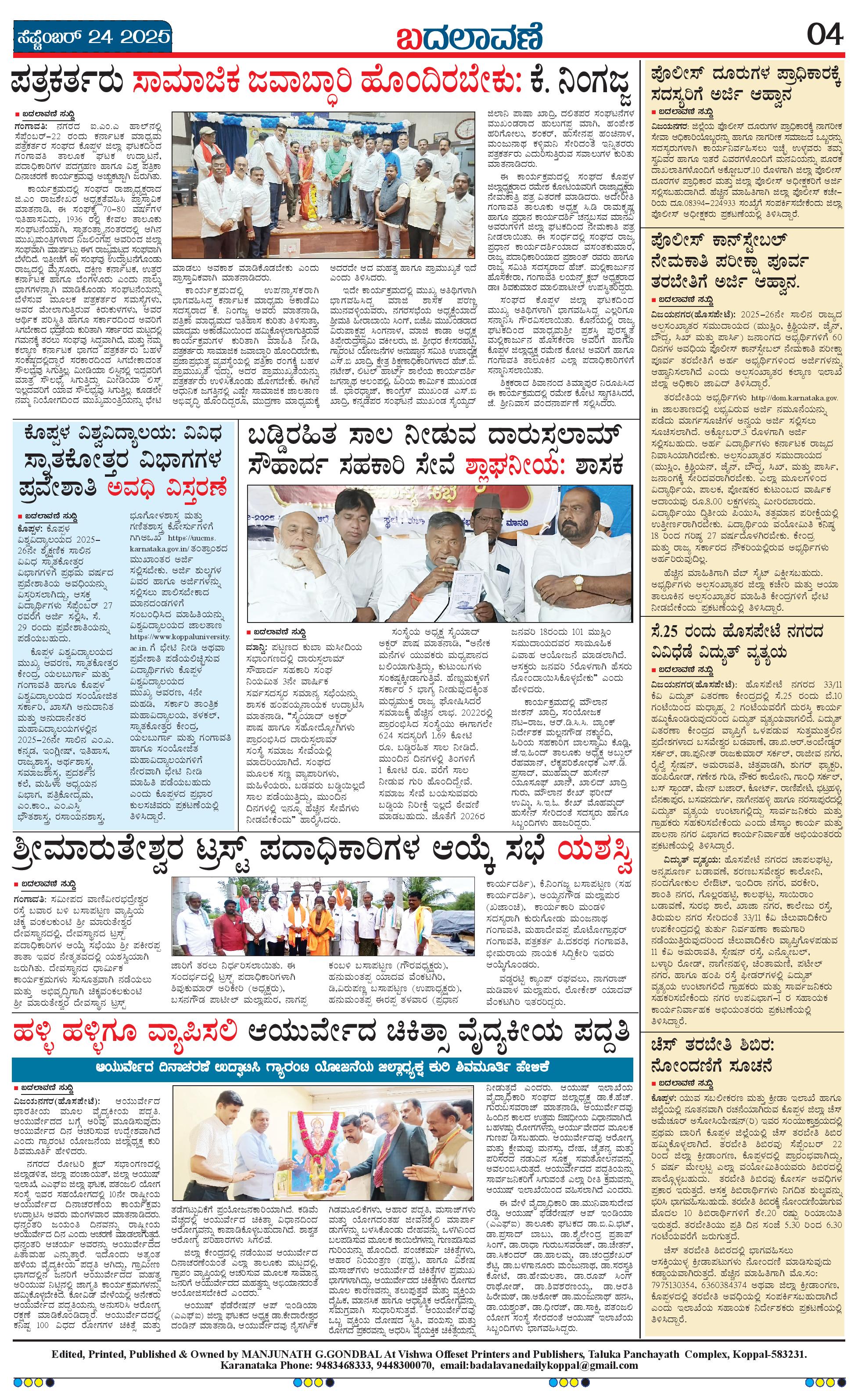 ಬದಲಾವಣೆ 24 SEPTEMBER 2025 Page: 4 September 24, 2025 << First << 4 >> Last >> Page 1Page 2Page 3Page 4 × ಬದಲಾವಣೆ 24 SEPTEMBER 2025 page-1page-2page-3page-4 << First << 4 >> Last >> page-1page-2page-3page-4 page-4