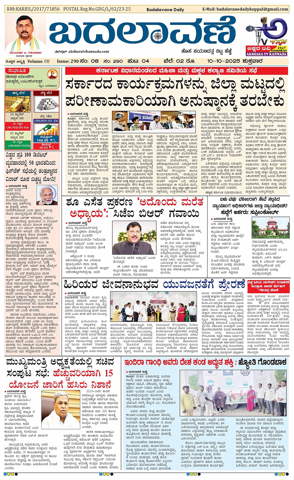 ಬದಲಾವಣೆ 10 OCTOBER 2025 October 10, 2025 << First << 1 >> Last >> Page 1Page 2Page 3Page 4 × ಬದಲಾವಣೆ 10 OCTOBER 2025 01020304 << First << 1 >> Last >> 01020304 01