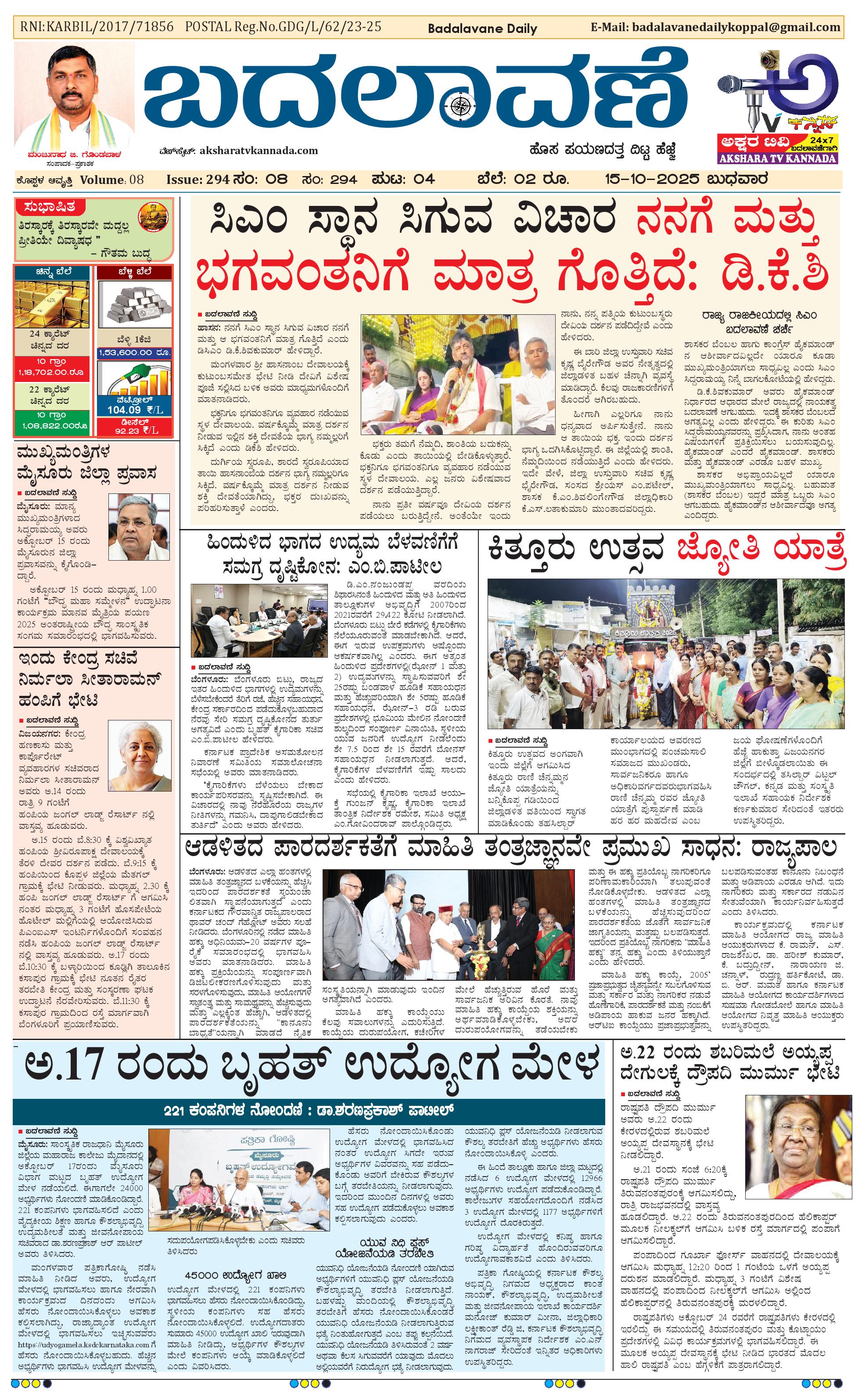 ಬದಲಾವಣೆ 15 OCTOBER 2025