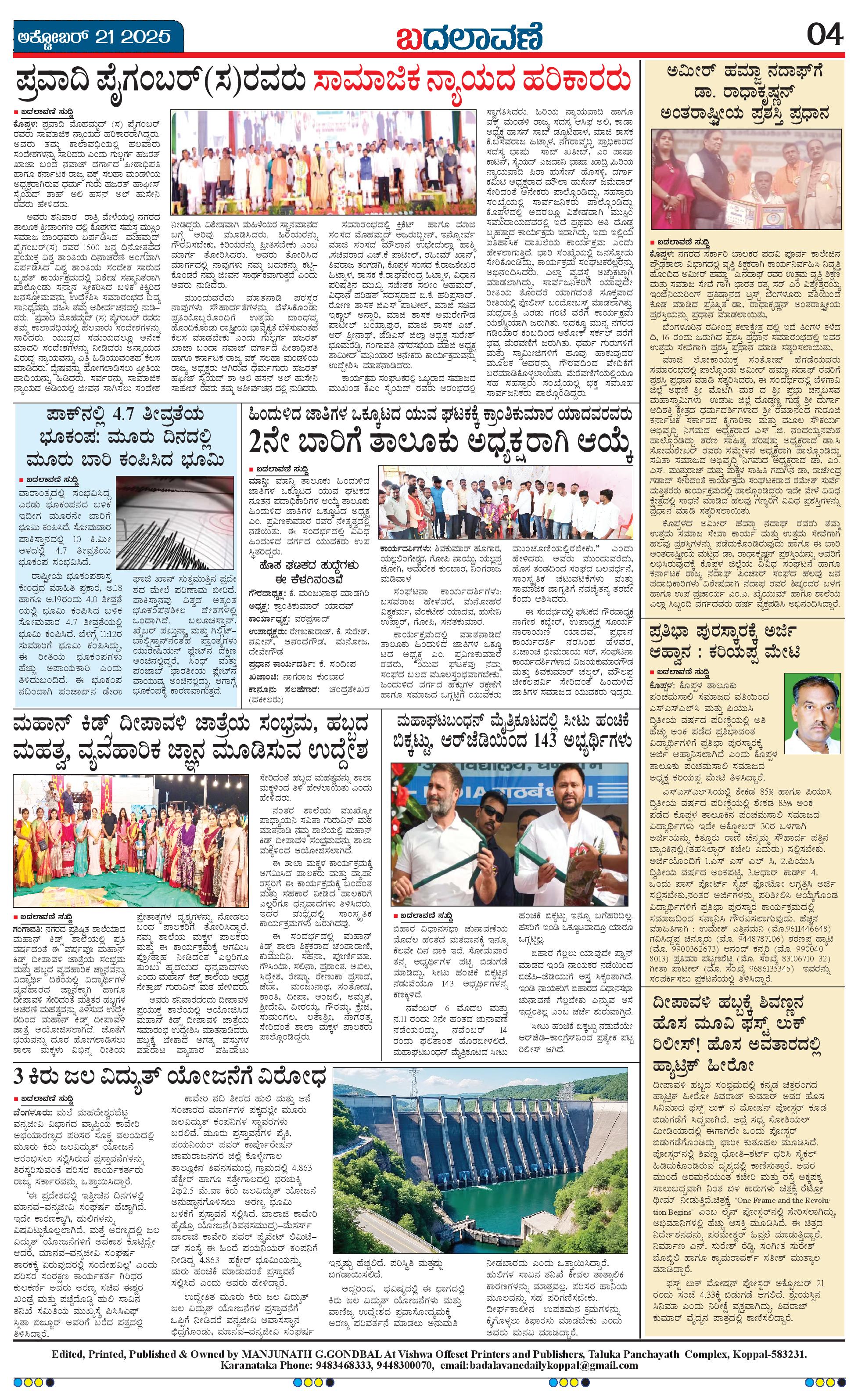 ಬದಲಾವಣೆ 21 OCTOBER 2025 Page: 4 October 21, 2025 << First << 4 >> Last >> Page 1Page 2Page 3Page 4 × ಬದಲಾವಣೆ 21 OCTOBER 2025 page-1page-2page-3page-4 << First << 4 >> Last >> page-1page-2page-3page-4 page-4