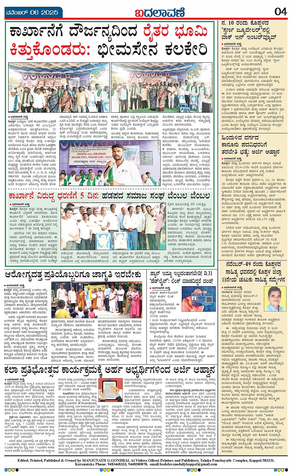 ಬದಲಾವಣೆ 06 November 2025 Page: 4 November 06, 2025 << First << 4 >> Last >> Page 1Page 2Page 3Page 4 × ಬದಲಾವಣೆ 06 November 2025 page-1page-2page-3page-4 << First << 4 >> Last >> page-1page-2page-3page-4 page-4