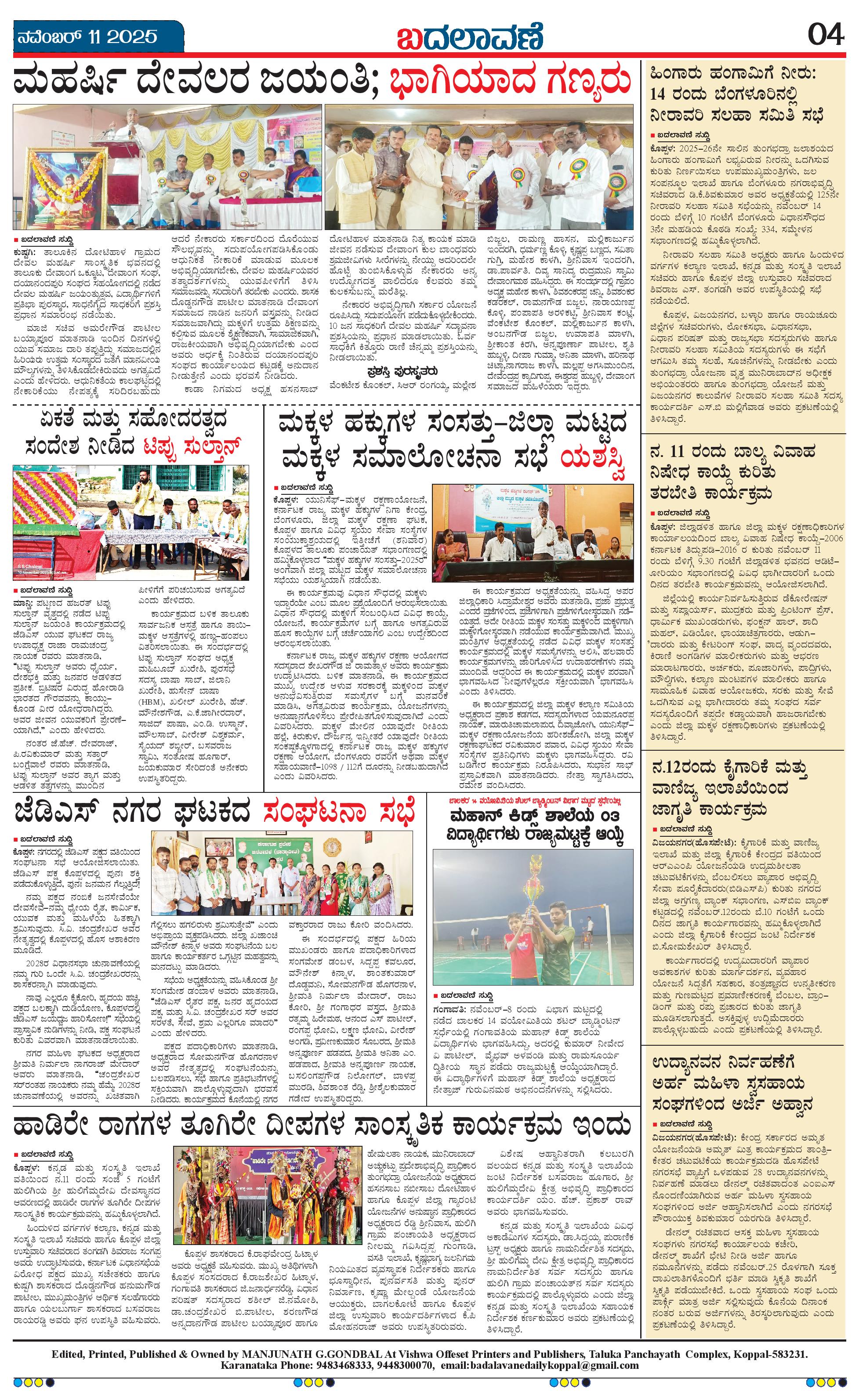 ಬದಲಾವಣೆ 11 November 2025 Page: 4 November 11, 2025 << First << 4 >> Last >> Page 1Page 2Page 3Page 4 × ಬದಲಾವಣೆ 11 November 2025 page-1page-2page-3page-4 << First << 4 >> Last >> page-1page-2page-3page-4 page-4