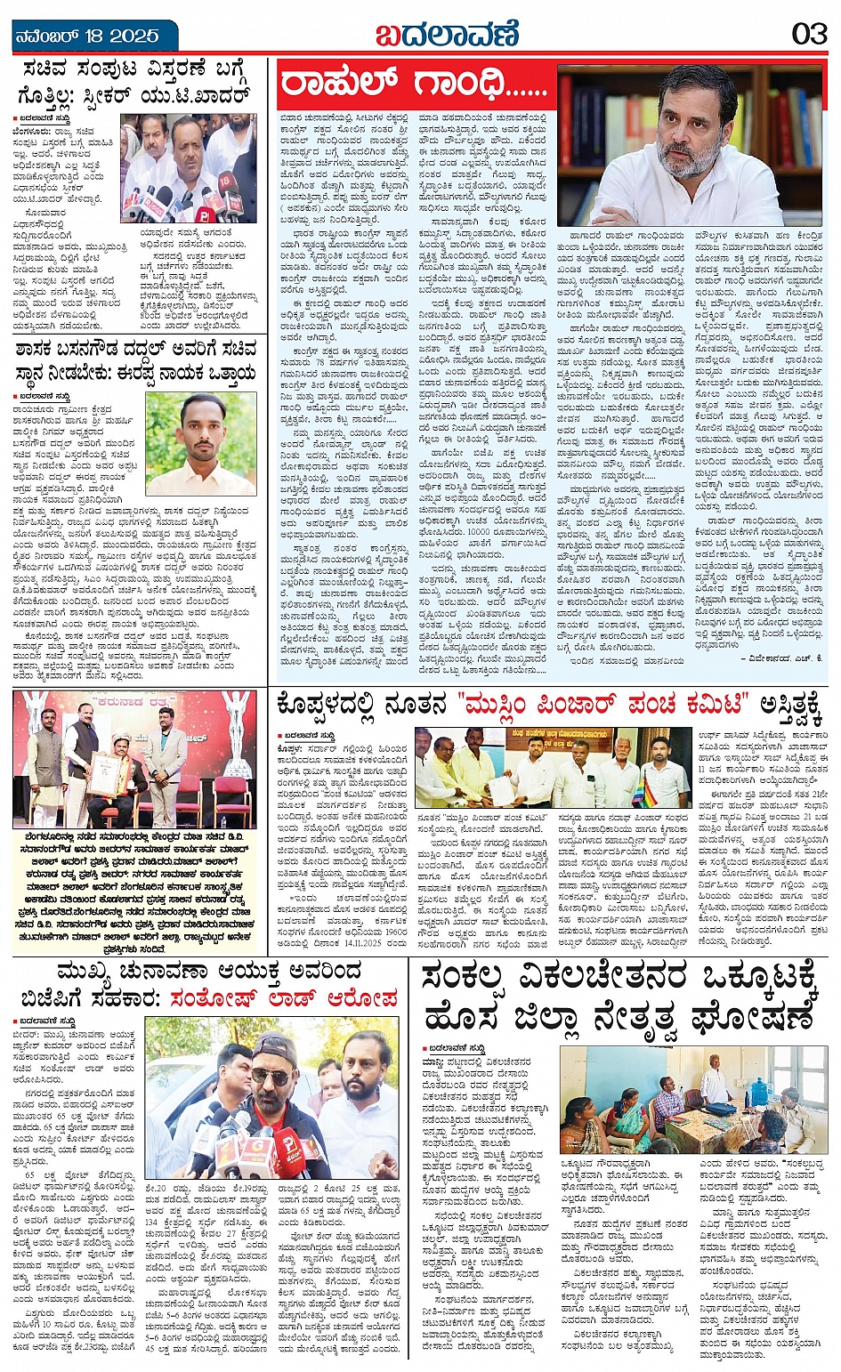 ಬದಲಾವಣೆ 18 November 2025 Page: 3 November 18, 2025 << First << 3 >> Last >> Page 1Page 2Page 3Page 4 × ಬದಲಾವಣೆ 18 November 2025 page-1page-2page-3page-4 << First << 3 >> Last >> page-1page-2page-3page-4 page-3