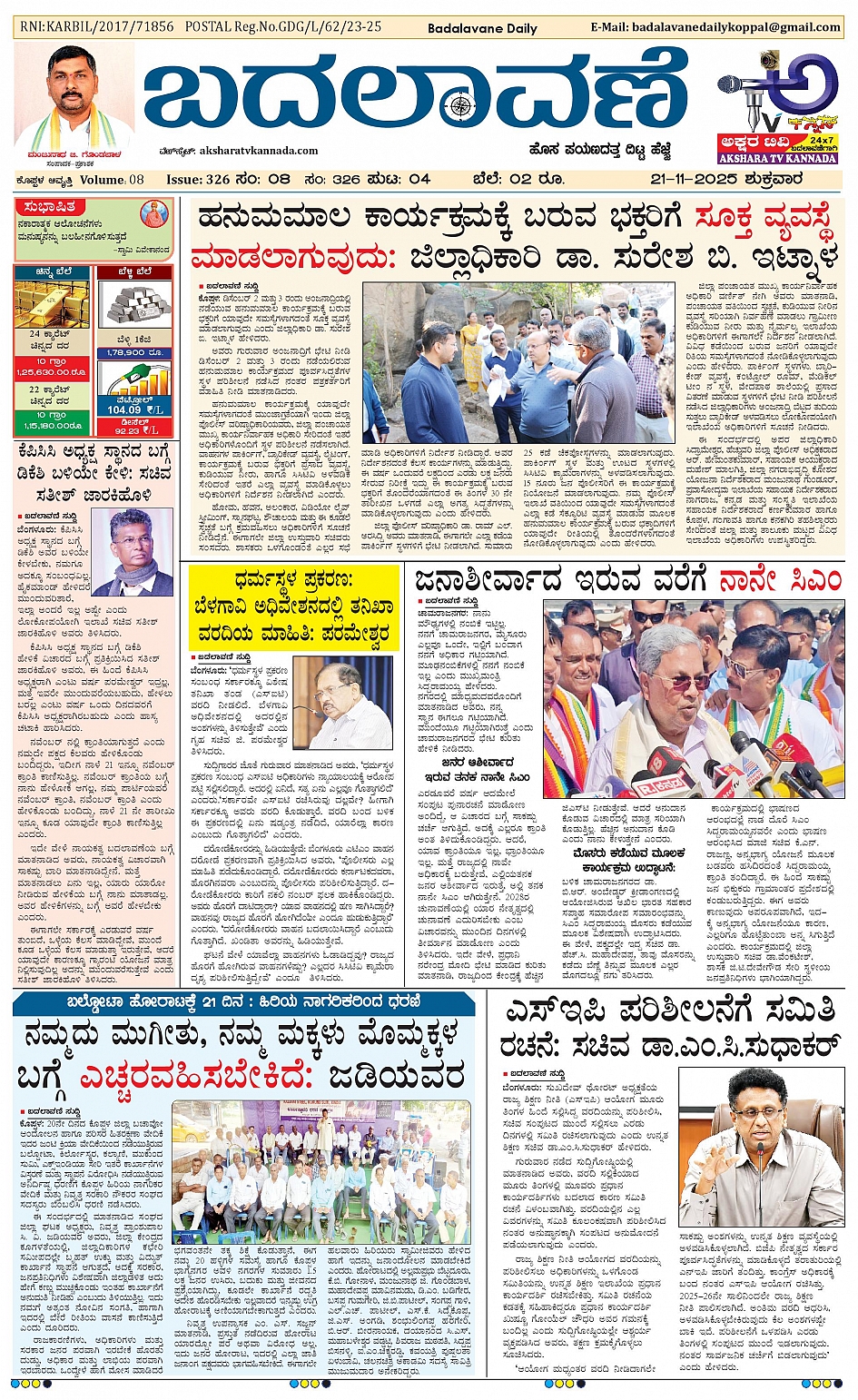 ಬದಲಾವಣೆ 21 November 2025 November 21, 2025 << First << 1 >> Last >> Page 1Page 2Page 3Page 4 × ಬದಲಾವಣೆ 21 November 2025 page-1page-2page-3page-4 << First << 1 >> Last >> page-1page-2page-3page-4 page-1