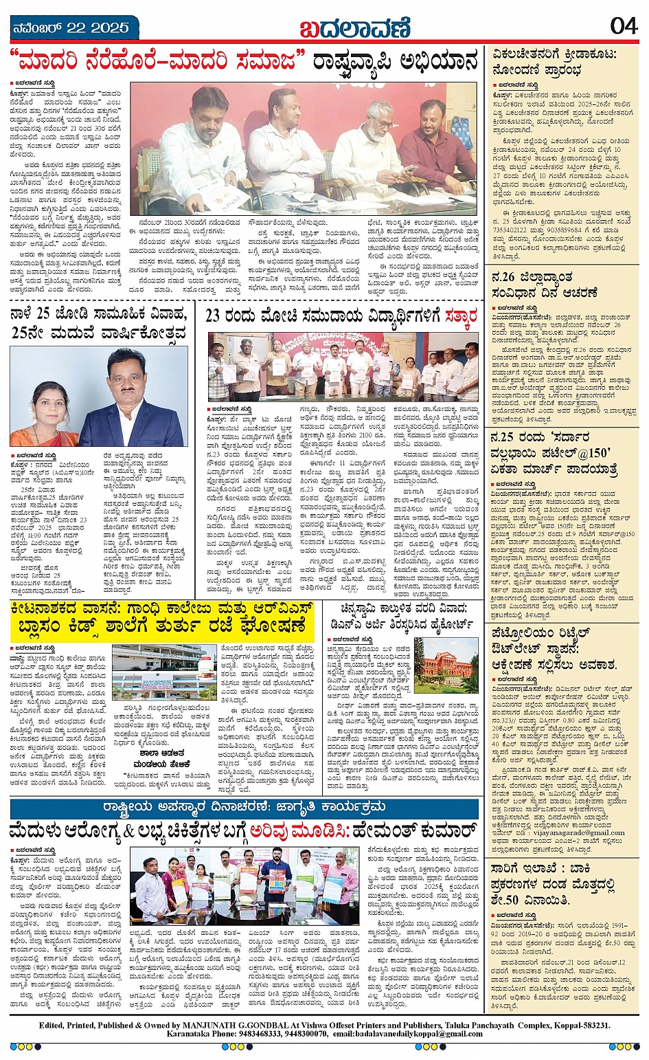ಬದಲಾವಣೆ 22 November 2025 Page: 4 November 22, 2025 << First << 4 >> Last >> Page 1Page 2Page 3Page 4 × ಬದಲಾವಣೆ 22 November 2025 page-1page-2page-3page-4 << First << 4 >> Last >> page-1page-2page-3page-4 page-4