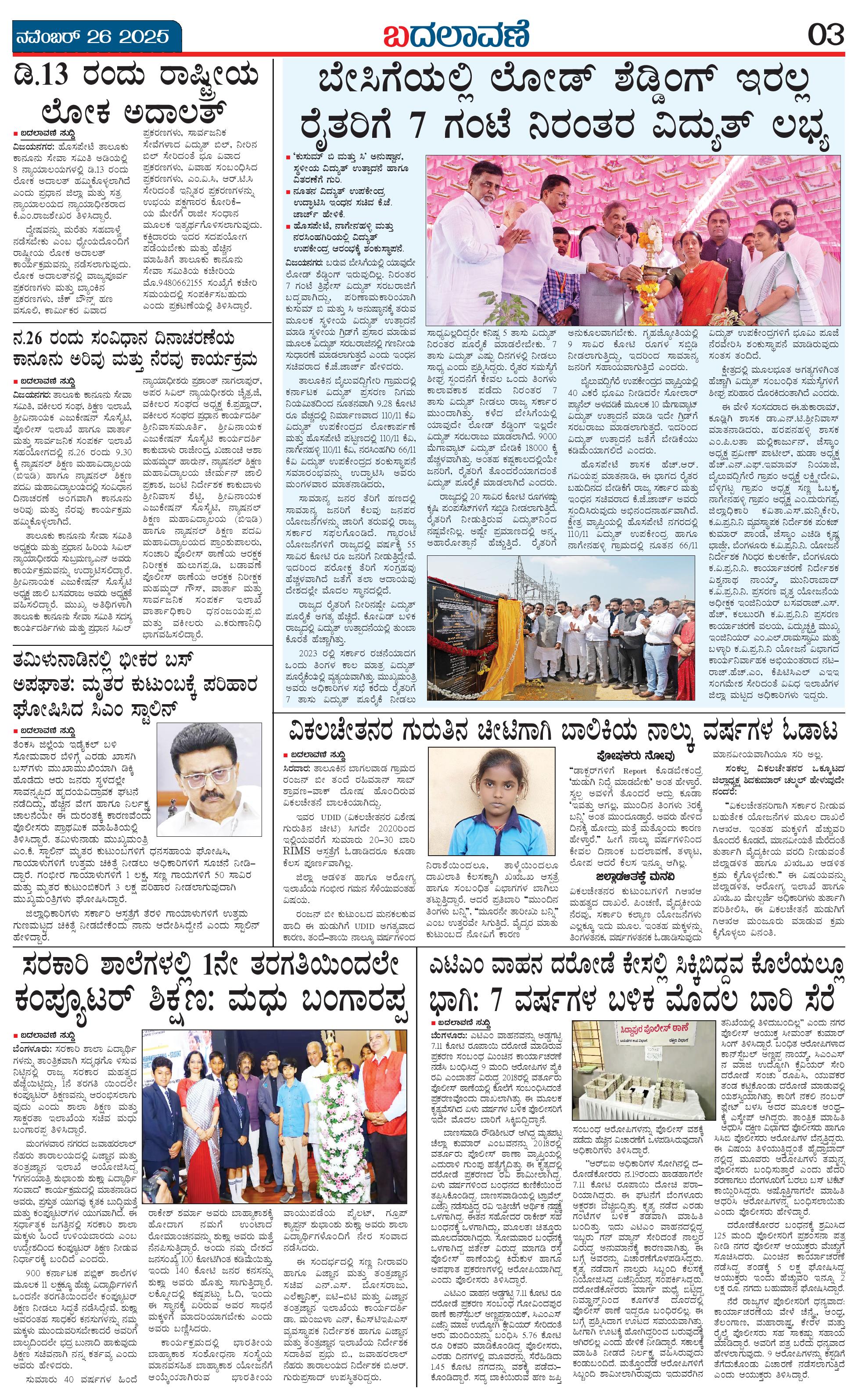 ಬದಲಾವಣೆ 26 November 2025 Page: 3 November 26, 2025 << First << 3 >> Last >> Page 1Page 2Page 3Page 4 × ಬದಲಾವಣೆ 26 November 2025 page-1page-2page-3page-4 << First << 3 >> Last >> page-1page-2page-3page-4 page-3