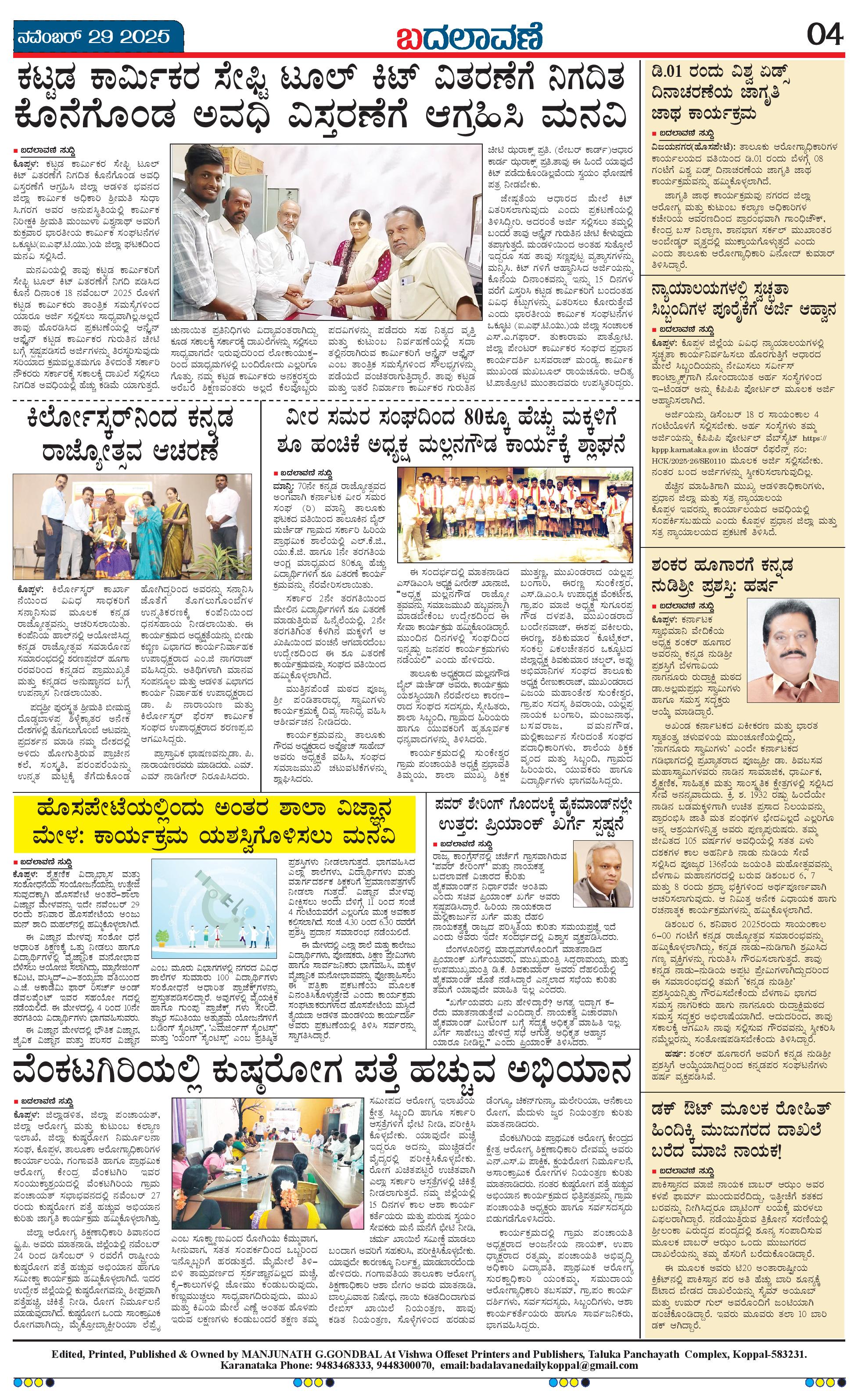 ಬದಲಾವಣೆ 29 November 2025 Page: 4 November 29, 2025 << First << 4 >> Last >> Page 1Page 2Page 3Page 4 × ಬದಲಾವಣೆ 29 November 2025 page-1page-2page-3page-4 << First << 4 >> Last >> page-1page-2page-3page-4 page-4