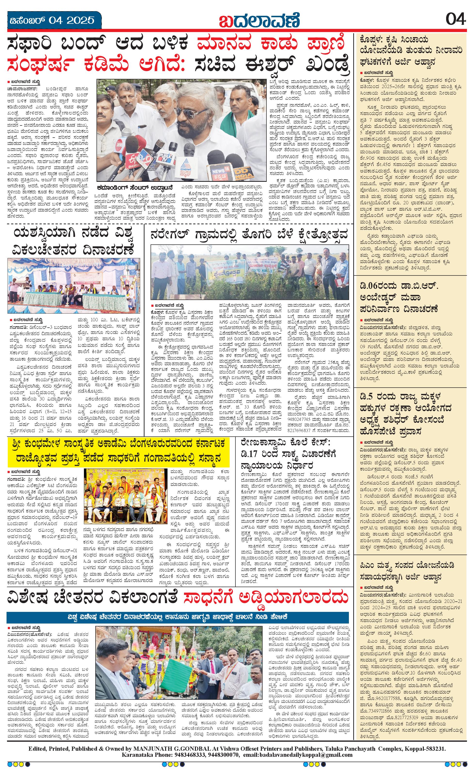 ಬದಲಾವಣೆ 04 December 2025 Page: 4 December 04, 2025 << First << 4 >> Last >> Page 1Page 2Page 3Page 4 × ಬದಲಾವಣೆ 04 December 2025 page-1page-2page-3page-4 << First << 4 >> Last >> page-1page-2page-3page-4 page-4