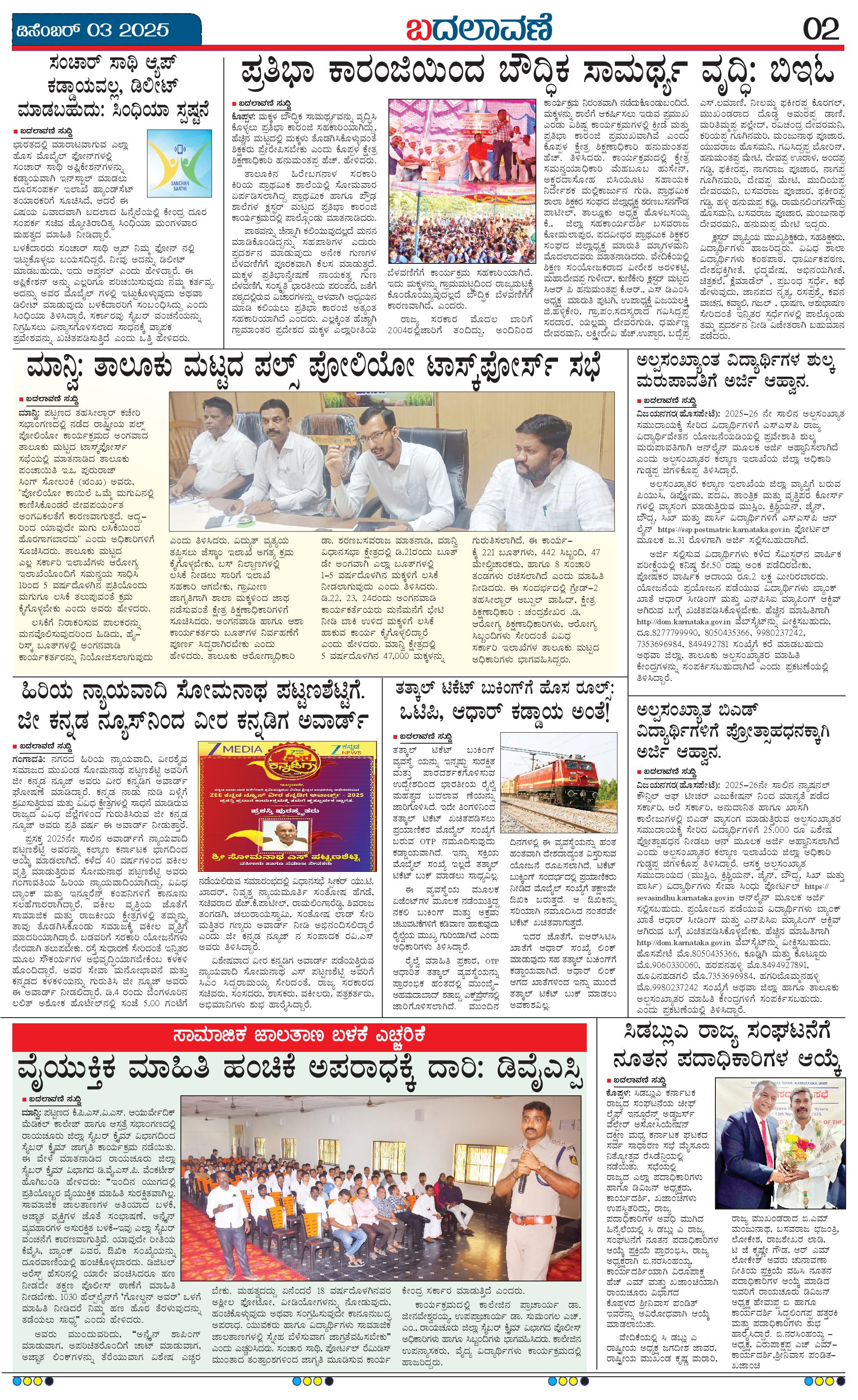 ಬದಲಾವಣೆ 03 December 2025 Page: 2 December 03, 2025 << First << 2 >> Last >> Page 1Page 2Page 3Page 4 × ಬದಲಾವಣೆ 03 December 2025 Badalavane Dec-03-Koppal Edition pdf-page-001Badalavane Dec-03-Koppal Edition pdf-page-002Badalavane Dec-03-Koppal Edition pdf-page-003Badalavane Dec-03-Koppal Edition pdf-page-004 << First << 2 >> Last >> Badalavane Dec-03-Koppal Edition pdf-page-001Badalavane Dec-03-Koppal Edition pdf-page-002Badalavane Dec-03-Koppal Edition pdf-page-003Badalavane Dec-03-Koppal Edition pdf-page-004 Badalavane Dec-03-Koppal Edition pdf-page-002