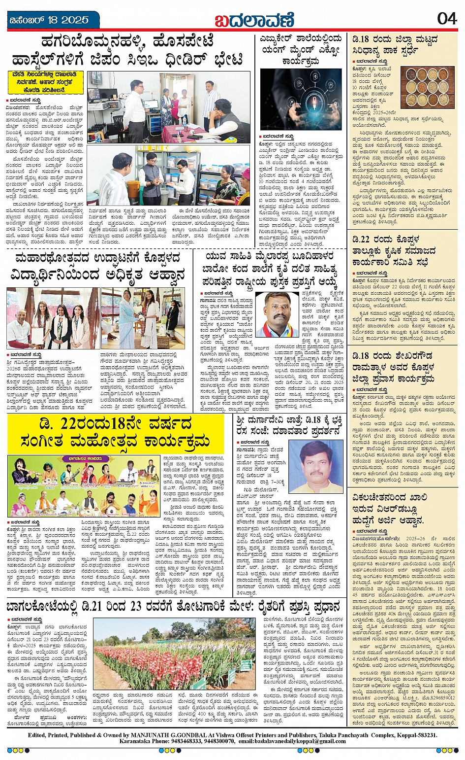ಬದಲಾವಣೆ 18 December 2025 Page: 4 December 18, 2025 << First << 4 >> Last >> Page 1Page 2Page 3Page 4 × ಬದಲಾವಣೆ 18 December 2025 page-1page-2page-3page-4 << First << 4 >> Last >> page-1page-2page-3page-4 page-4