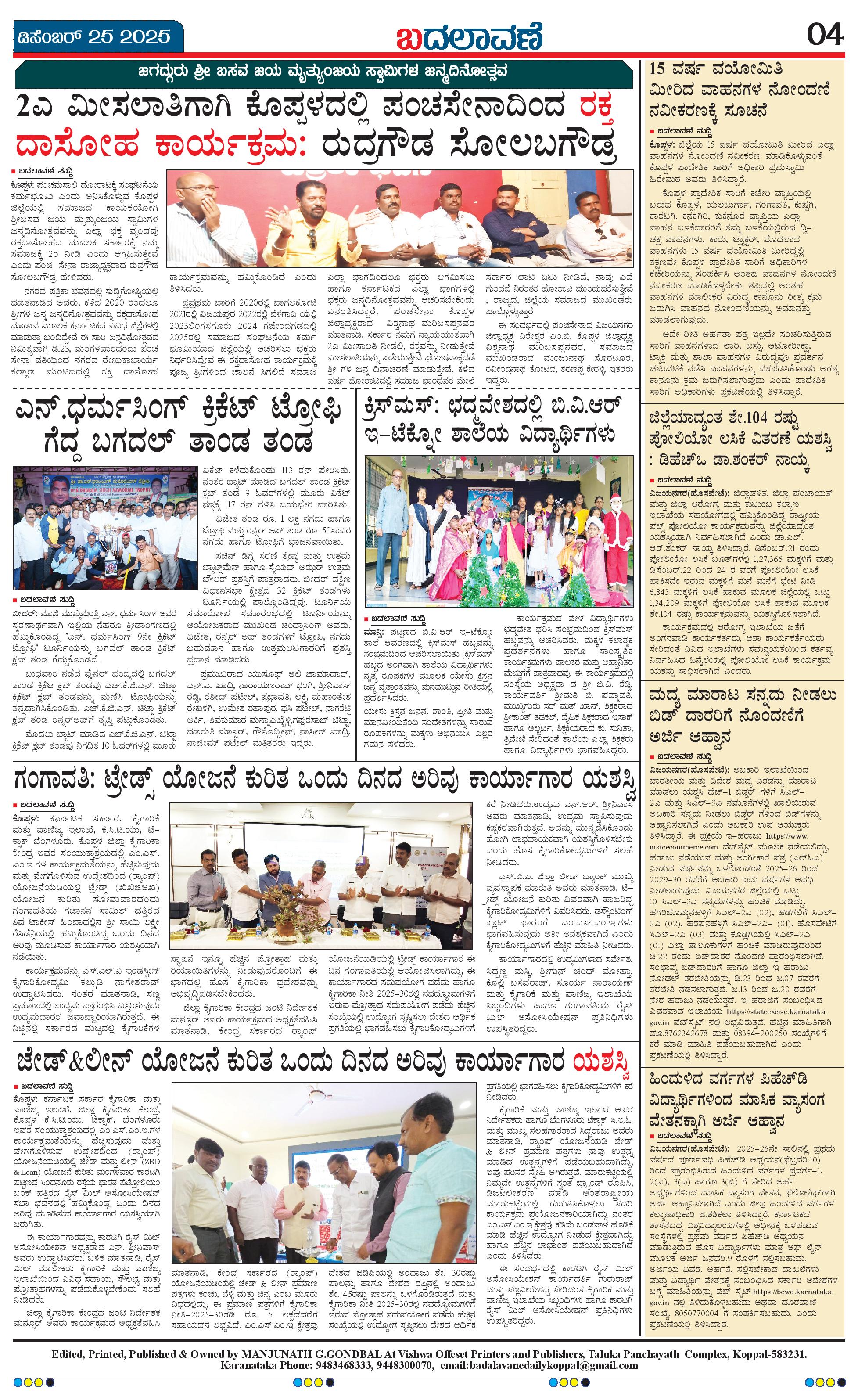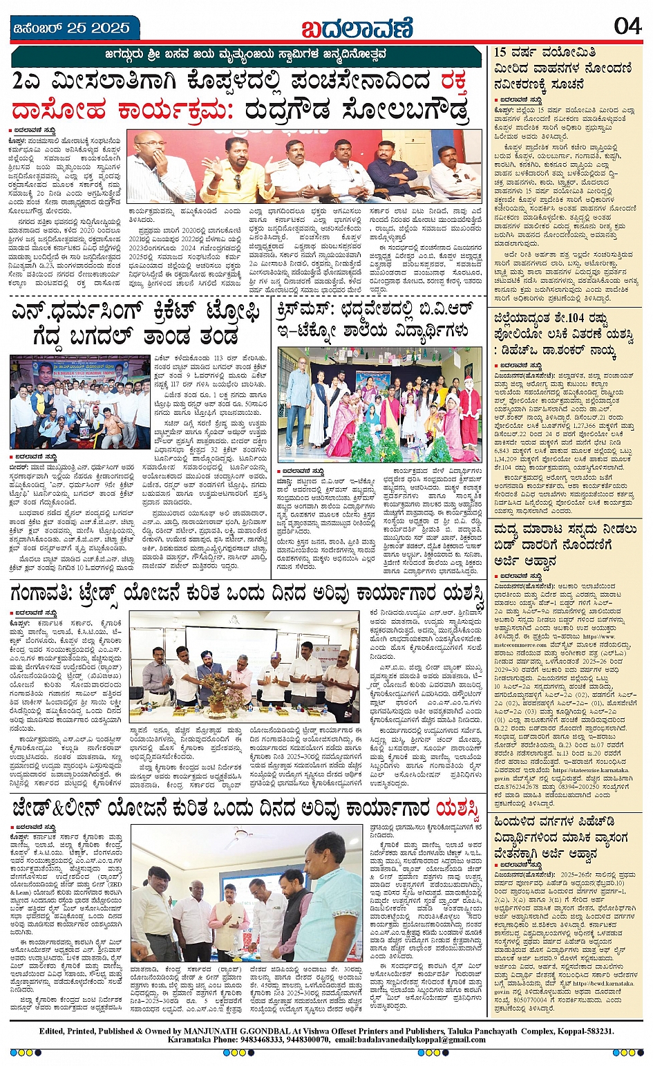 ಬದಲಾವಣೆ 25 December 2025 Page: 4 December 25, 2025 << First << 4 >> Last >> Page 1Page 2Page 3Page 4 × ಬದಲಾವಣೆ 25 December 2025 Badalavane Dec-25-Koppal Edition pdf-page-001Badalavane Dec-25-Koppal Edition pdf-page-002Badalavane Dec-25-Koppal Edition pdf-page-003Badalavane Dec-25-Koppal Edition pdf-page-004 << First << 4 >> Last >> Badalavane Dec-25-Koppal Edition pdf-page-001Badalavane Dec-25-Koppal Edition pdf-page-002Badalavane Dec-25-Koppal Edition pdf-page-003Badalavane Dec-25-Koppal Edition pdf-page-004 Badalavane Dec-25-Koppal Edition pdf-page-004