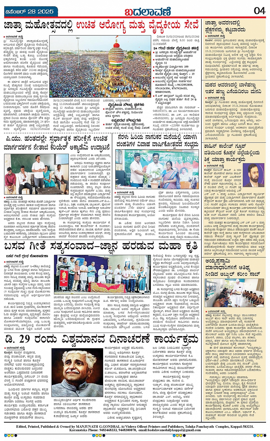 ಬದಲಾವಣೆ 28 December 2025 Page: 4 December 28, 2025 << First << 4 >> Last >> Page 1Page 2Page 3Page 4 × ಬದಲಾವಣೆ 28 December 2025 Badalavane Dec-28-Koppal Edition pdf-page-001Badalavane Dec-28-Koppal Edition pdf-page-002Badalavane Dec-28-Koppal Edition pdf-page-003Badalavane Dec-28-Koppal Edition pdf-page-004 << First << 4 >> Last >> Badalavane Dec-28-Koppal Edition pdf-page-001Badalavane Dec-28-Koppal Edition pdf-page-002Badalavane Dec-28-Koppal Edition pdf-page-003Badalavane Dec-28-Koppal Edition pdf-page-004 Badalavane Dec-28-Koppal Edition pdf-page-004