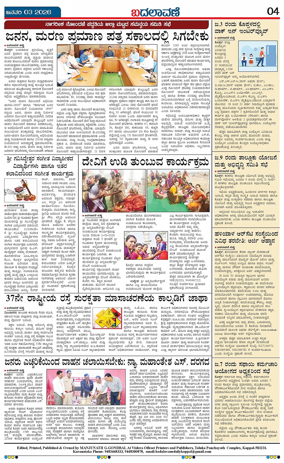 ಬದಲಾವಣೆ 03 JANUARY 2026 Page: 4 January 03, 2026 << First << 4 >> Last >> Page 1Page 2Page 3Page 4 × ಬದಲಾವಣೆ 03 JANUARY 2026 Badalavane Jan-03-Koppal Edition pdf-f-page-001Badalavane Jan-03-Koppal Edition pdf-f-page-002Badalavane Jan-03-Koppal Edition pdf-f-page-003Badalavane Jan-03-Koppal Edition pdf-f-page-004 << First << 4 >> Last >> Badalavane Jan-03-Koppal Edition pdf-f-page-001Badalavane Jan-03-Koppal Edition pdf-f-page-002Badalavane Jan-03-Koppal Edition pdf-f-page-003Badalavane Jan-03-Koppal Edition pdf-f-page-004 Badalavane Jan-03-Koppal Edition pdf-f-page-004