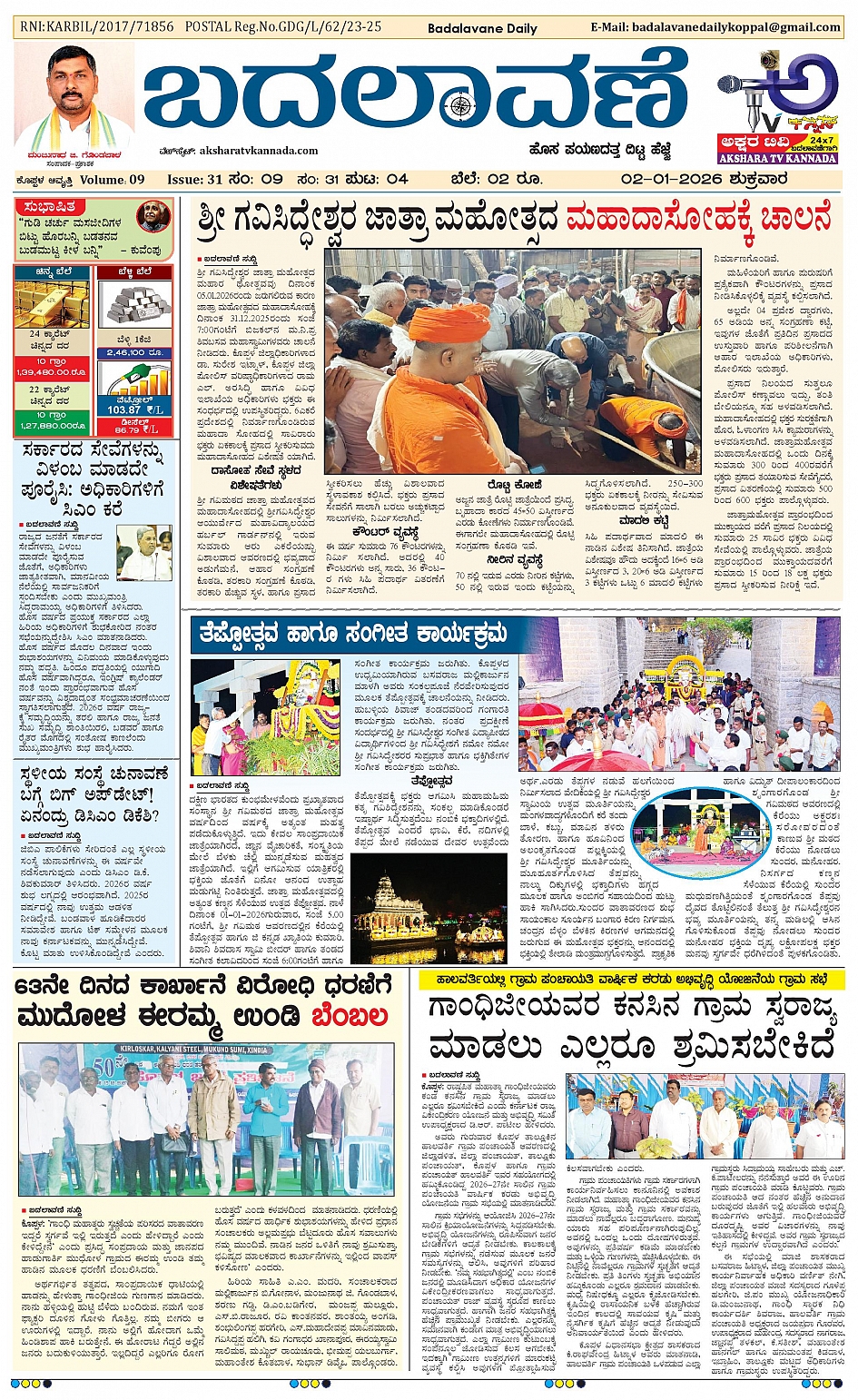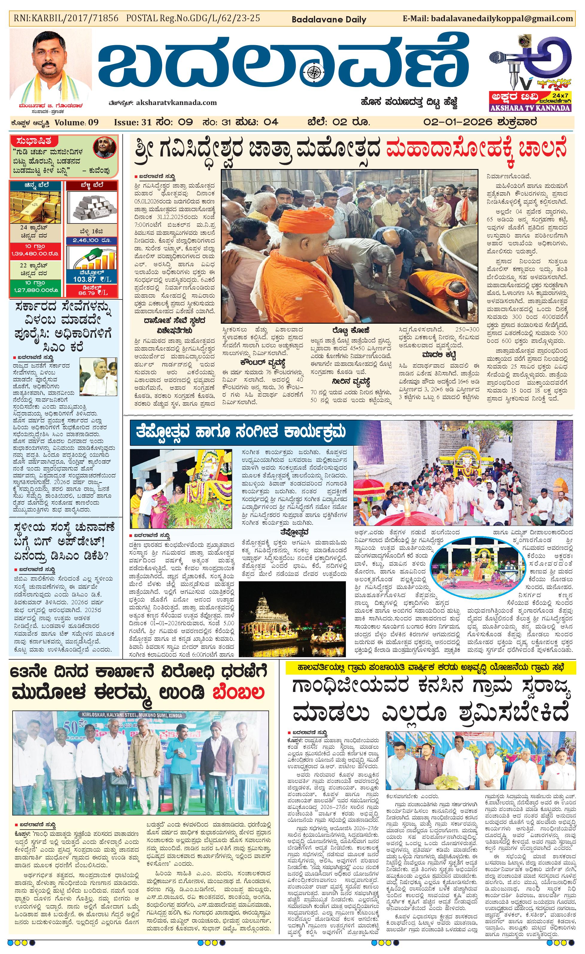 ಬದಲಾವಣೆ 02 JANUARY 2026 January 02, 2026 << First << 1 >> Last >> Page 1Page 2Page 3Page 4 × ಬದಲಾವಣೆ 02 JANUARY 2026 Badalavane Jan-02-Koppal Edition pdf-page-001Badalavane Jan-02-Koppal Edition pdf-page-002Badalavane Jan-02-Koppal Edition pdf-page-003Badalavane Jan-02-Koppal Edition pdf-page-004 << First << 1 >> Last >> Badalavane Jan-02-Koppal Edition pdf-page-001Badalavane Jan-02-Koppal Edition pdf-page-002Badalavane Jan-02-Koppal Edition pdf-page-003Badalavane Jan-02-Koppal Edition pdf-page-004 Badalavane Jan-02-Koppal Edition pdf-page-001