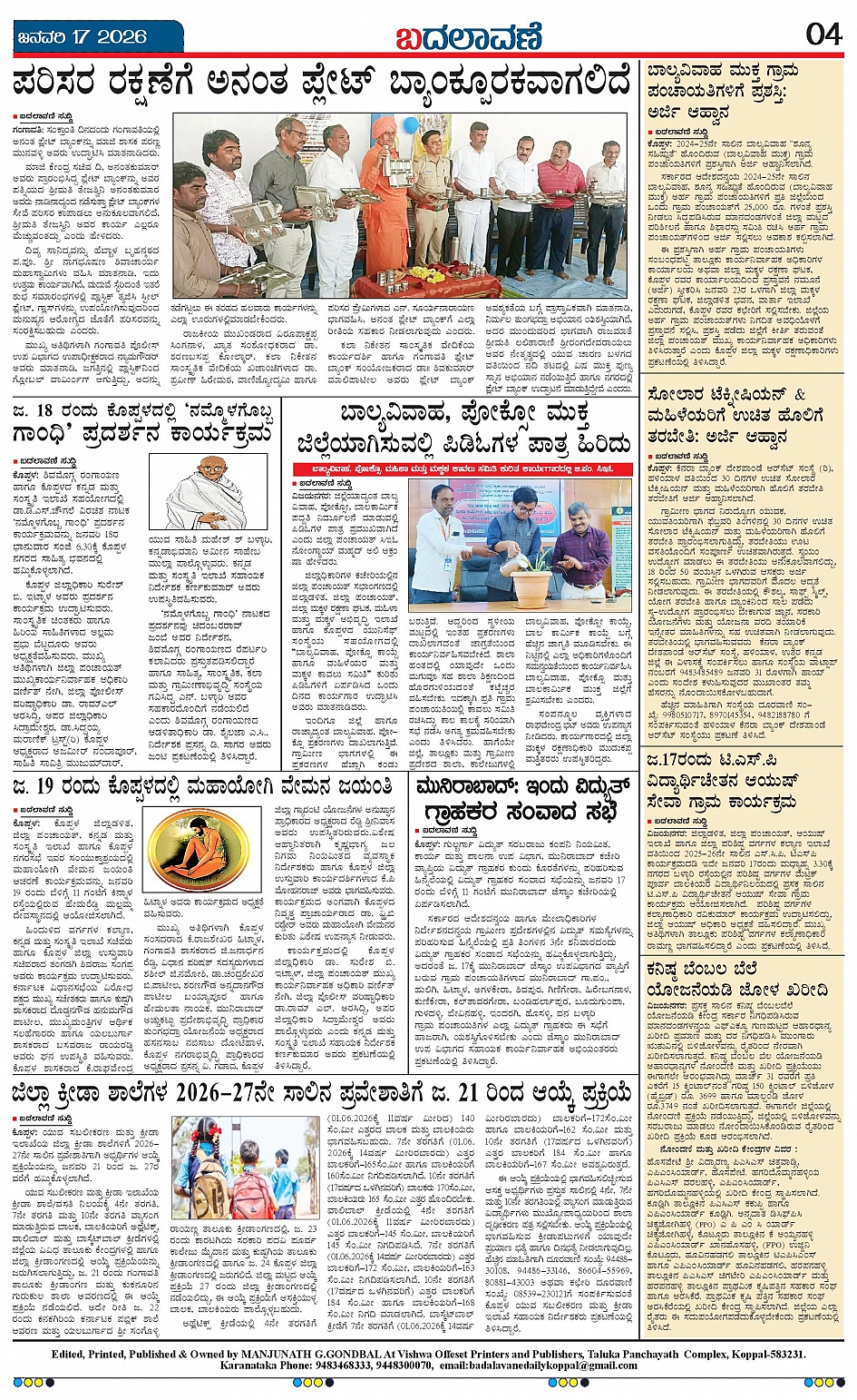 ಬದಲಾವಣೆ 17 JANUARY 2026 Page: 4 January 17, 2026 << First << 4 >> Last >> Page 1Page 2Page 3Page 4 × ಬದಲಾವಣೆ 17 JANUARY 2026 Badalavane Jan-17-Koppal Edition pdf-page-001Badalavane Jan-17-Koppal Edition pdf-page-002Badalavane Jan-17-Koppal Edition pdf-page-003Badalavane Jan-17-Koppal Edition pdf-page-004 << First << 4 >> Last >> Badalavane Jan-17-Koppal Edition pdf-page-001Badalavane Jan-17-Koppal Edition pdf-page-002Badalavane Jan-17-Koppal Edition pdf-page-003Badalavane Jan-17-Koppal Edition pdf-page-004 Badalavane Jan-17-Koppal Edition pdf-page-004
