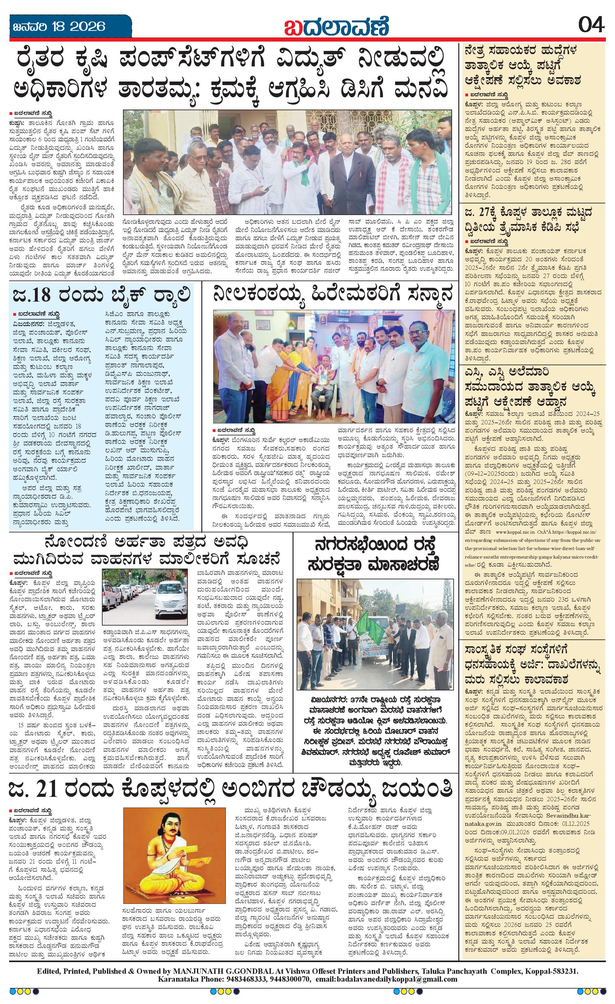 ಬದಲಾವಣೆ 18 JANUARY 2026 Page: 4 January 18, 2026 << First << 4 >> Last >> Page 1Page 2Page 3Page 4 × ಬದಲಾವಣೆ 18 JANUARY 2026 Badalavane Jan-18-Koppal Edition pdf-page-001Badalavane Jan-18-Koppal Edition pdf-page-002Badalavane Jan-18-Koppal Edition pdf-page-003Badalavane Jan-18-Koppal Edition pdf-page-004 << First << 4 >> Last >> Badalavane Jan-18-Koppal Edition pdf-page-001Badalavane Jan-18-Koppal Edition pdf-page-002Badalavane Jan-18-Koppal Edition pdf-page-003Badalavane Jan-18-Koppal Edition pdf-page-004 Badalavane Jan-18-Koppal Edition pdf-page-004