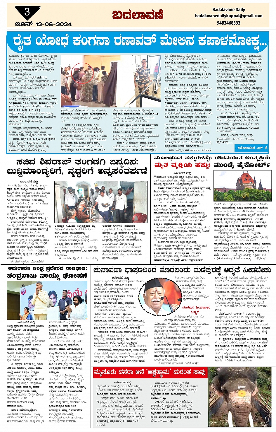 ಬದಲಾವಣೆ 12 June 2024 Page: 3 June 12, 2024 << First << 3 >> Last >> Page 1Page 2Page 3Page 4 × ಬದಲಾವಣೆ 12 June 2024 page-1page-2page-3page-4 << First << 3 >> Last >> page-1page-2page-3page-4 page-3
