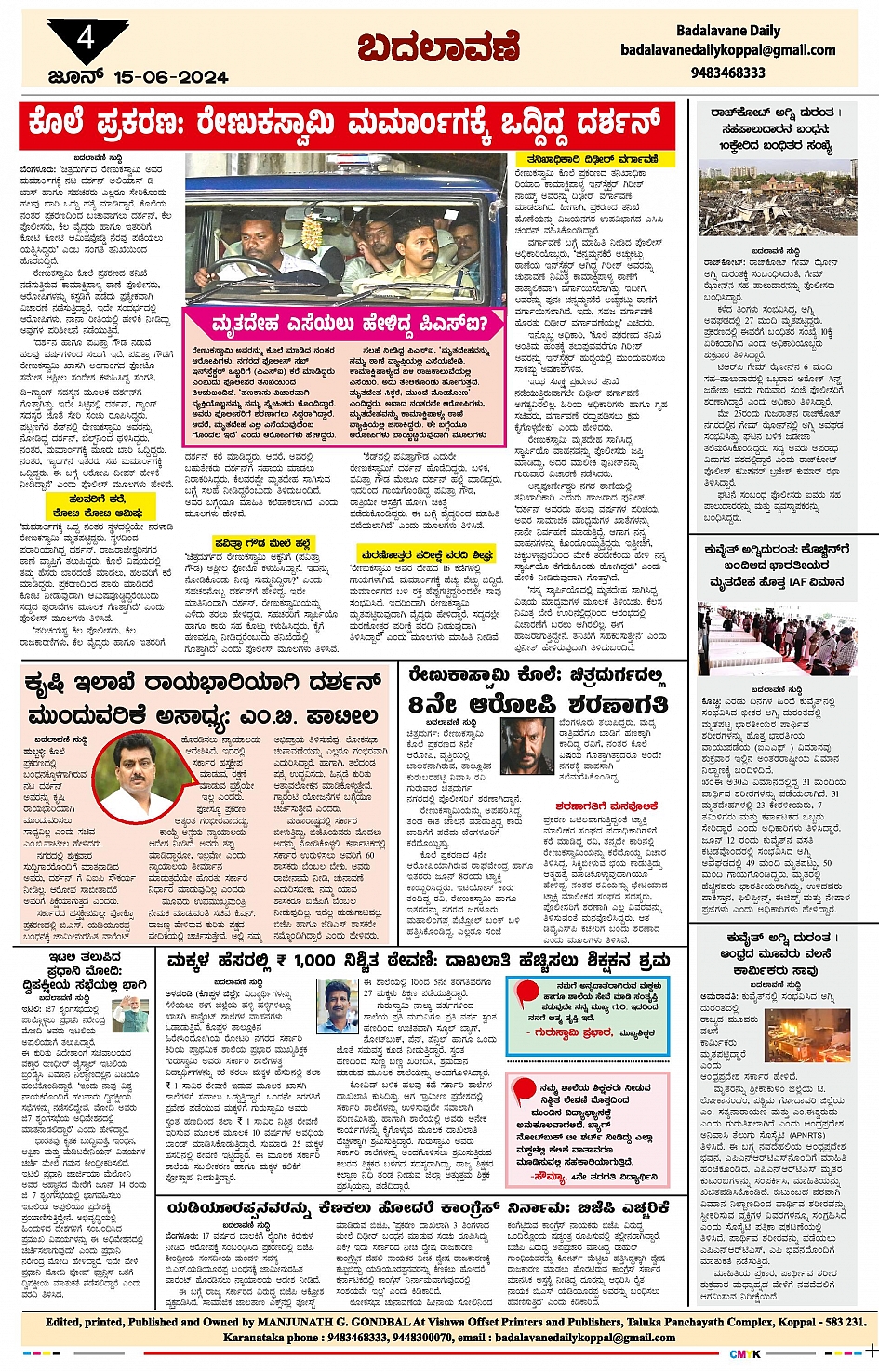 ಬದಲಾವಣೆ 15 June 2024 Page: 4 June 15, 2024 << First << 4 >> Last >> Page 1Page 2Page 3Page 4 × ಬದಲಾವಣೆ 15 June 2024 page-1page-2page-3page-4 << First << 4 >> Last >> page-1page-2page-3page-4 page-4