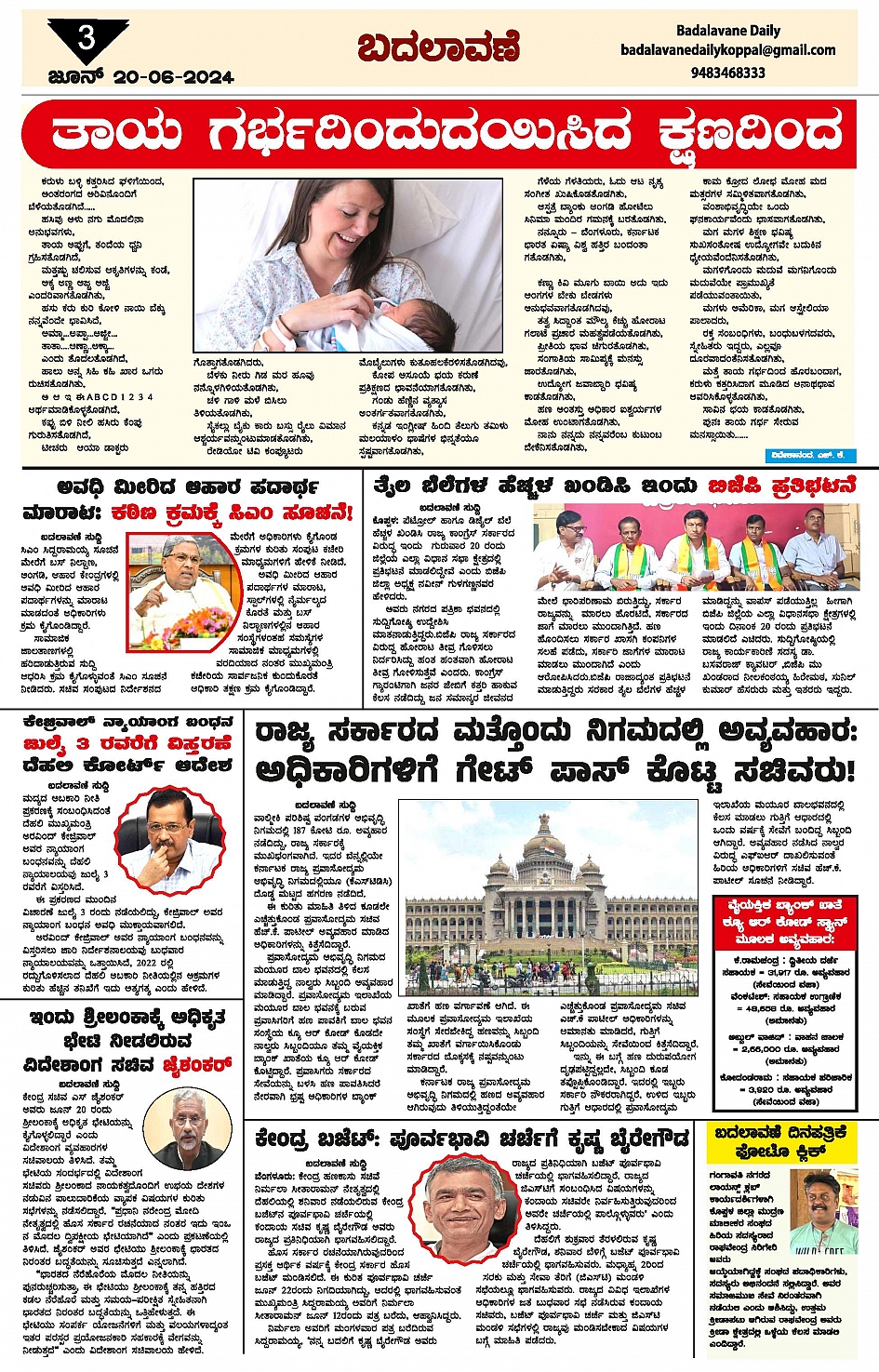ಬದಲಾವಣೆ 20 June 2024 Page: 3 June 20, 2024 << First << 3 >> Last >> Page 1Page 2Page 3Page 4 × ಬದಲಾವಣೆ 20 June 2024 page1page2page3page4 << First << 3 >> Last >> page1page2page3page4 page3