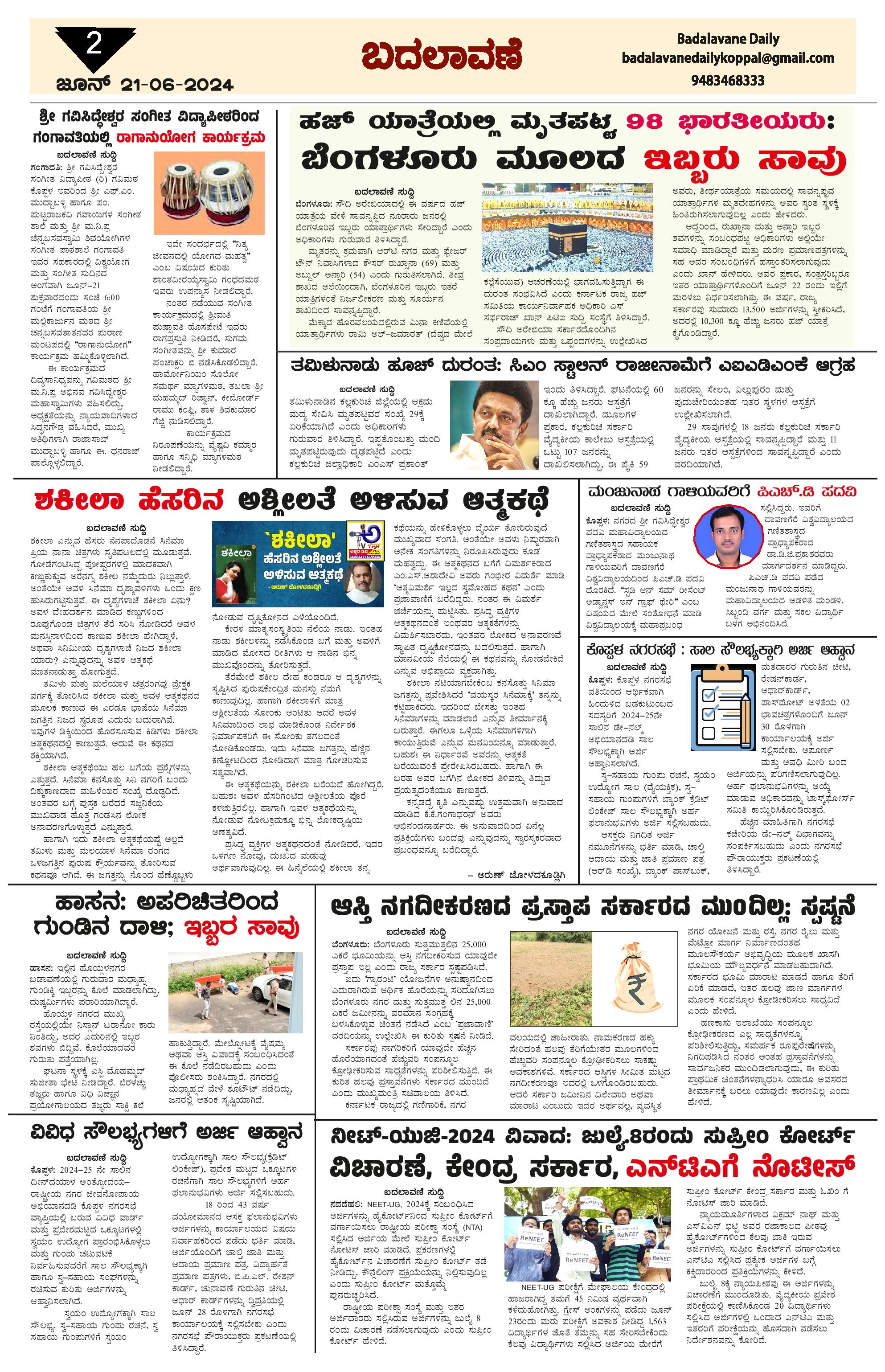 ಬದಲಾವಣೆ 21 June 2024 Page: 2 June 21, 2024 << First << 2 >> Last >> Page 1Page 2Page 3Page 4 × ಬದಲಾವಣೆ 21 June 2024 page-1page-2page-3page-4 << First << 2 >> Last >> page-1page-2page-3page-4 page-2