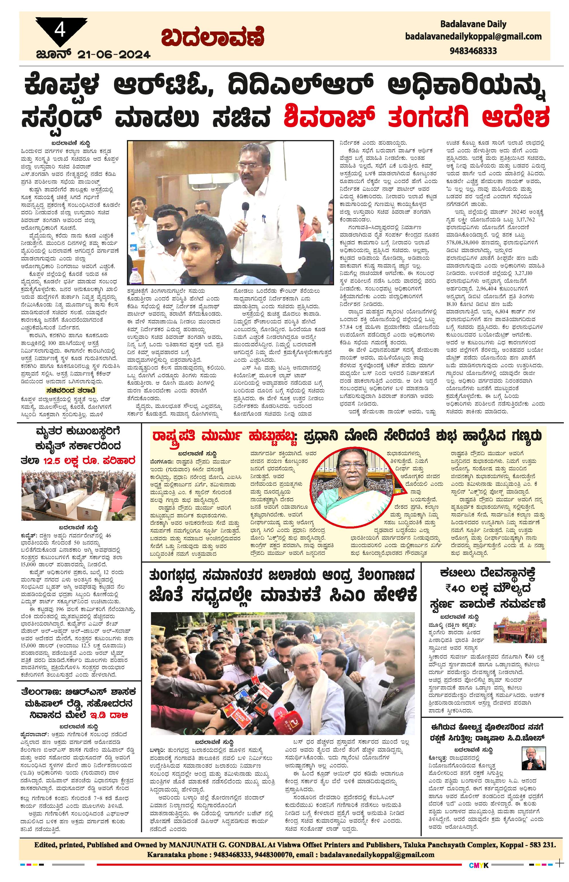 ಬದಲಾವಣೆ 21 June 2024 Page: 4 June 21, 2024 << First << 4 >> Last >> Page 1Page 2Page 3Page 4 × ಬದಲಾವಣೆ 21 June 2024 page-1page-2page-3page-4 << First << 4 >> Last >> page-1page-2page-3page-4 page-4