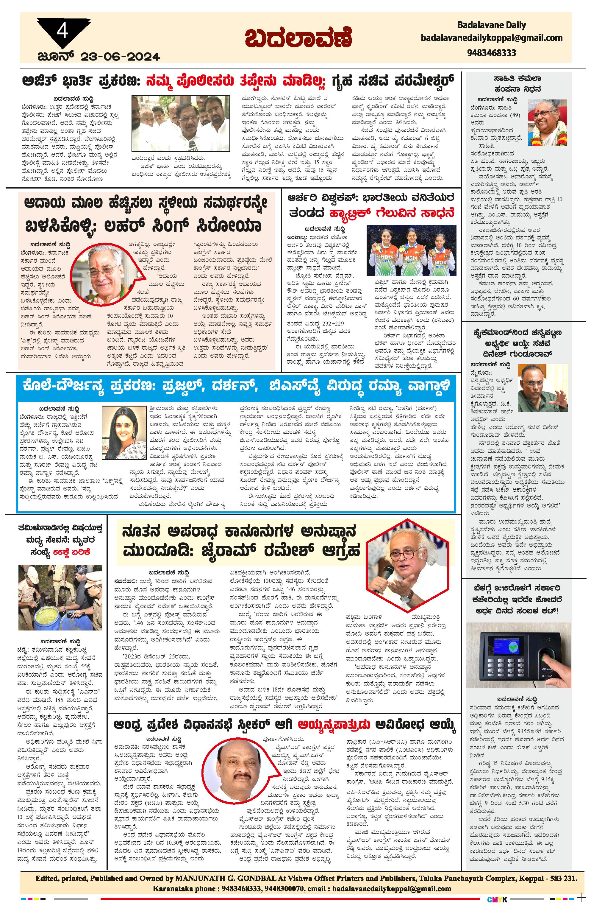 ಬದಲಾವಣೆ 23 June 2024 Page: 4 June 23, 2024 << First << 4 >> Last >> Page 1Page 2Page 3Page 4 × ಬದಲಾವಣೆ 23 June 2024 page-1page-2page-3page-4 << First << 4 >> Last >> page-1page-2page-3page-4 page-4