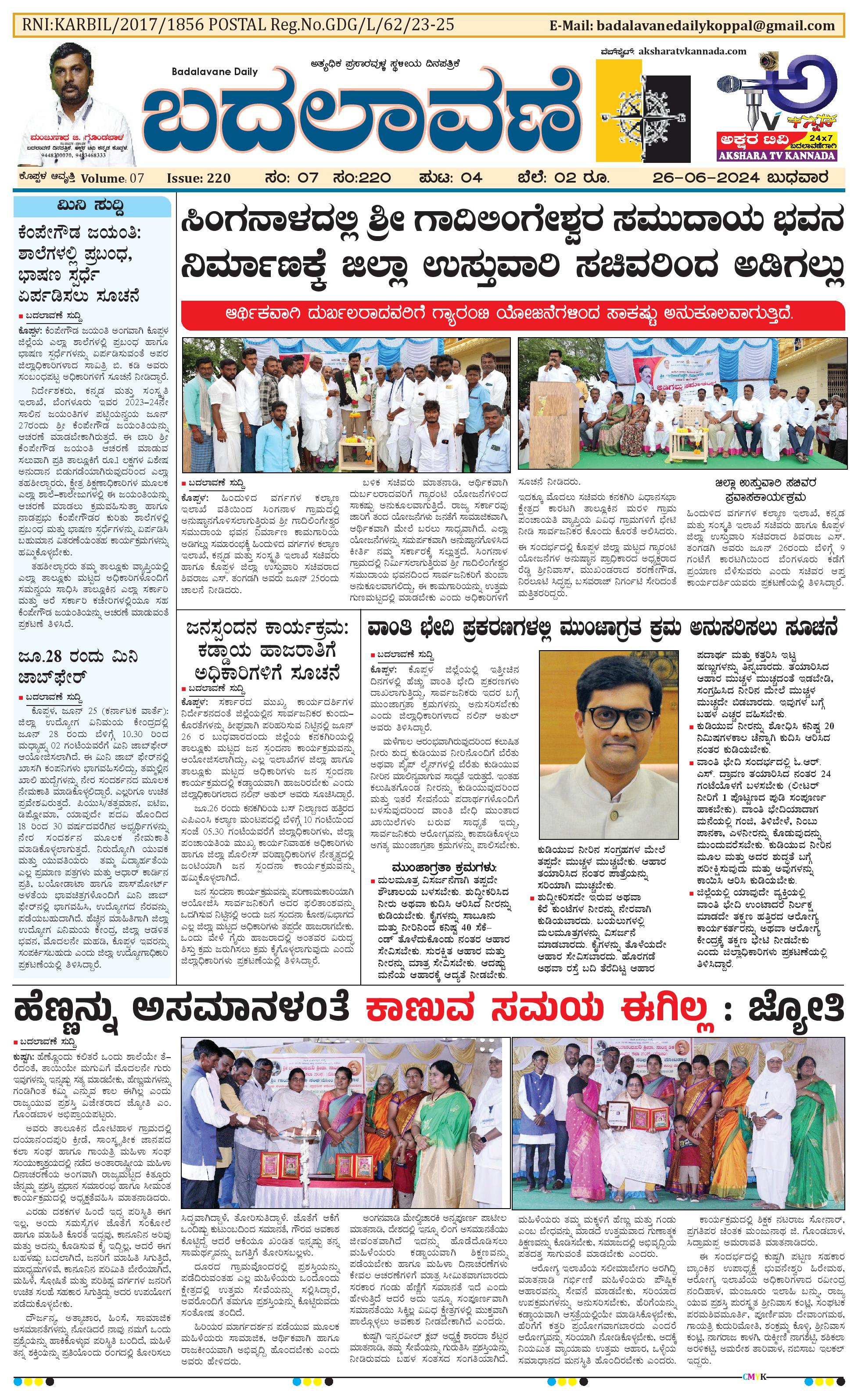 ಬದಲಾವಣೆ 26 June 2024 June 26, 2024 << First << 1 >> Last >> Page 1Page 2Page 3Page 4 × ಬದಲಾವಣೆ 26 June 2024 page-1page-2page-3page-4 << First << 1 >> Last >> page-1page-2page-3page-4 page-1