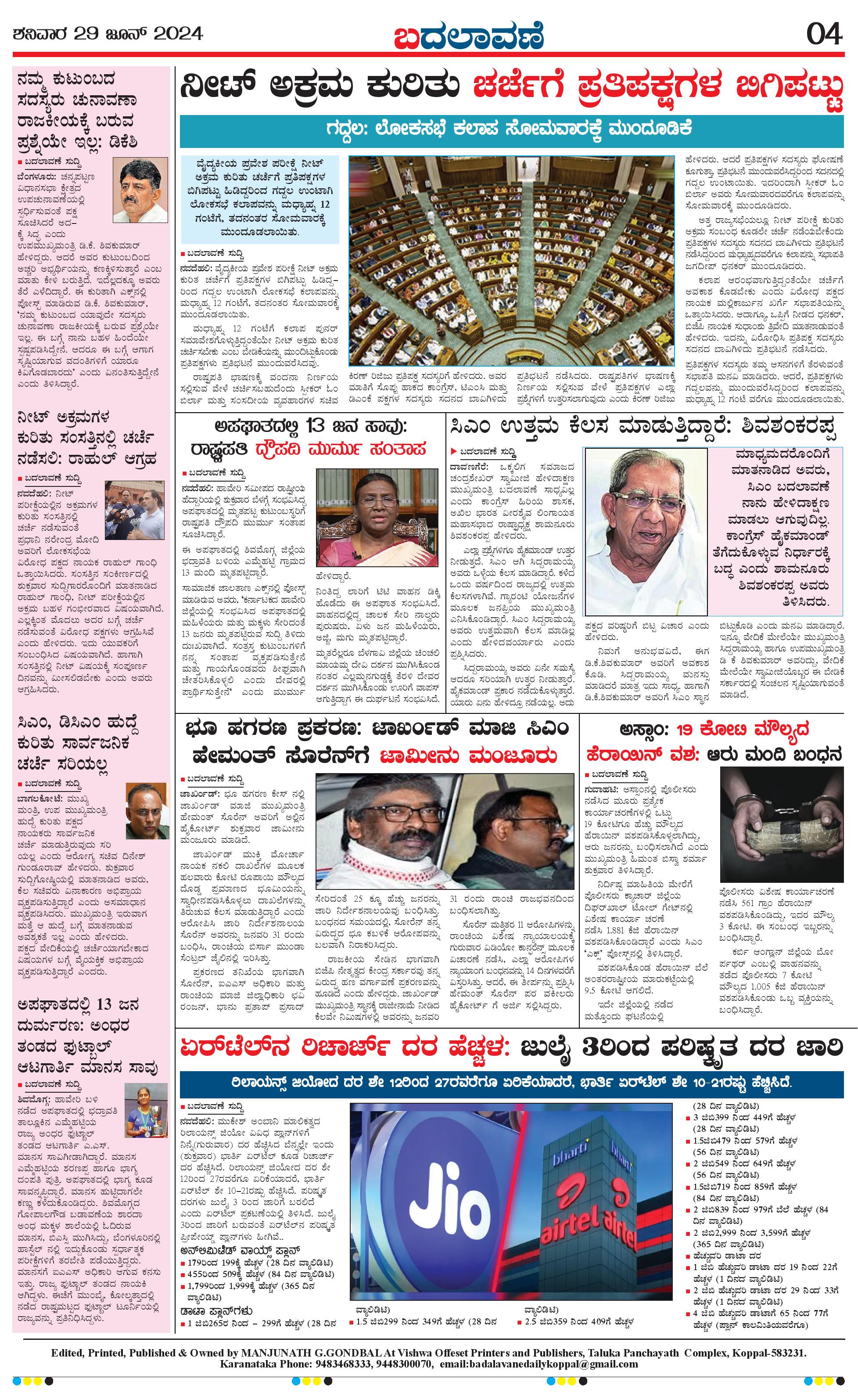 ಬದಲಾವಣೆ 29 June 2024 Page: 4 June 29, 2024 << First << 4 >> Last >> Page 1Page 2Page 3Page 4 × ಬದಲಾವಣೆ 29 June 2024 page-1page-2page-3page-4 << First << 4 >> Last >> page-1page-2page-3page-4 page-4