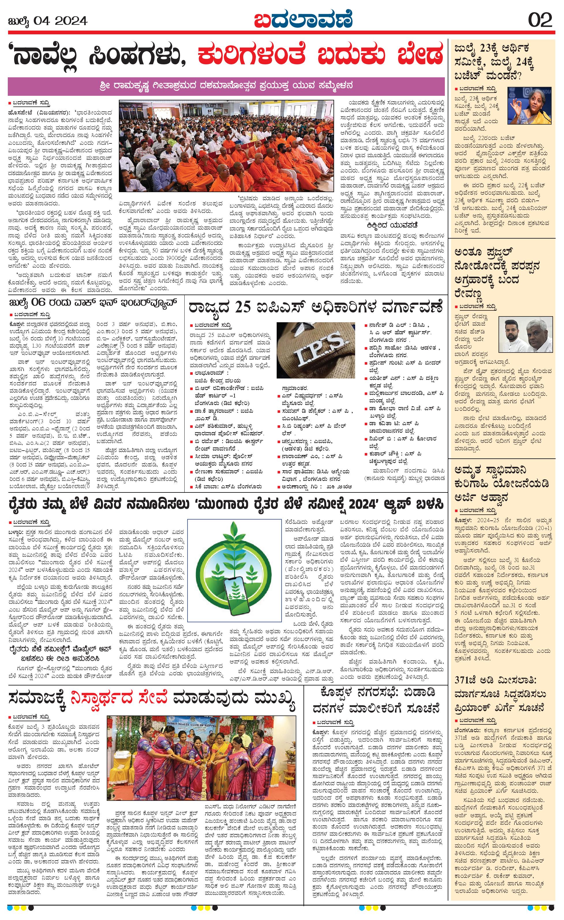 ಬದಲಾವಣೆ 04 July 2024 Page: 2 July 04, 2024 << First << 2 >> Last >> Page 1Page 2Page 3Page 4 × ಬದಲಾವಣೆ 04 July 2024 page-1page-2page-3page-4 << First << 2 >> Last >> page-1page-2page-3page-4 page-2