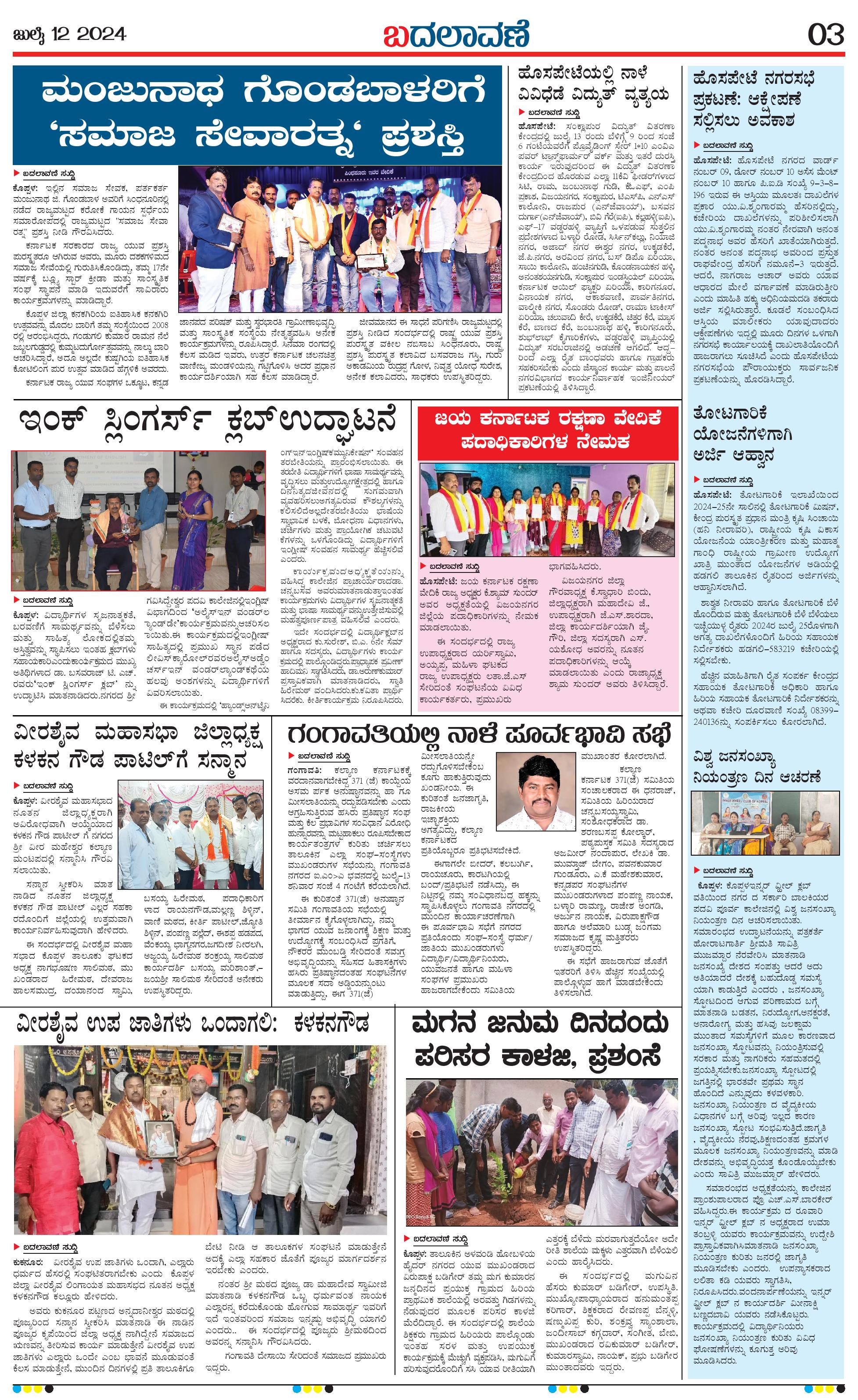 ಬದಲಾವಣೆ 12 July 2024 Page: 3 July 12, 2024 << First << 3 >> Last >> Page 1Page 2Page 3Page 4 × ಬದಲಾವಣೆ 12 July 2024 page-1page-2page-3page-4 << First << 3 >> Last >> page-1page-2page-3page-4 page-3
