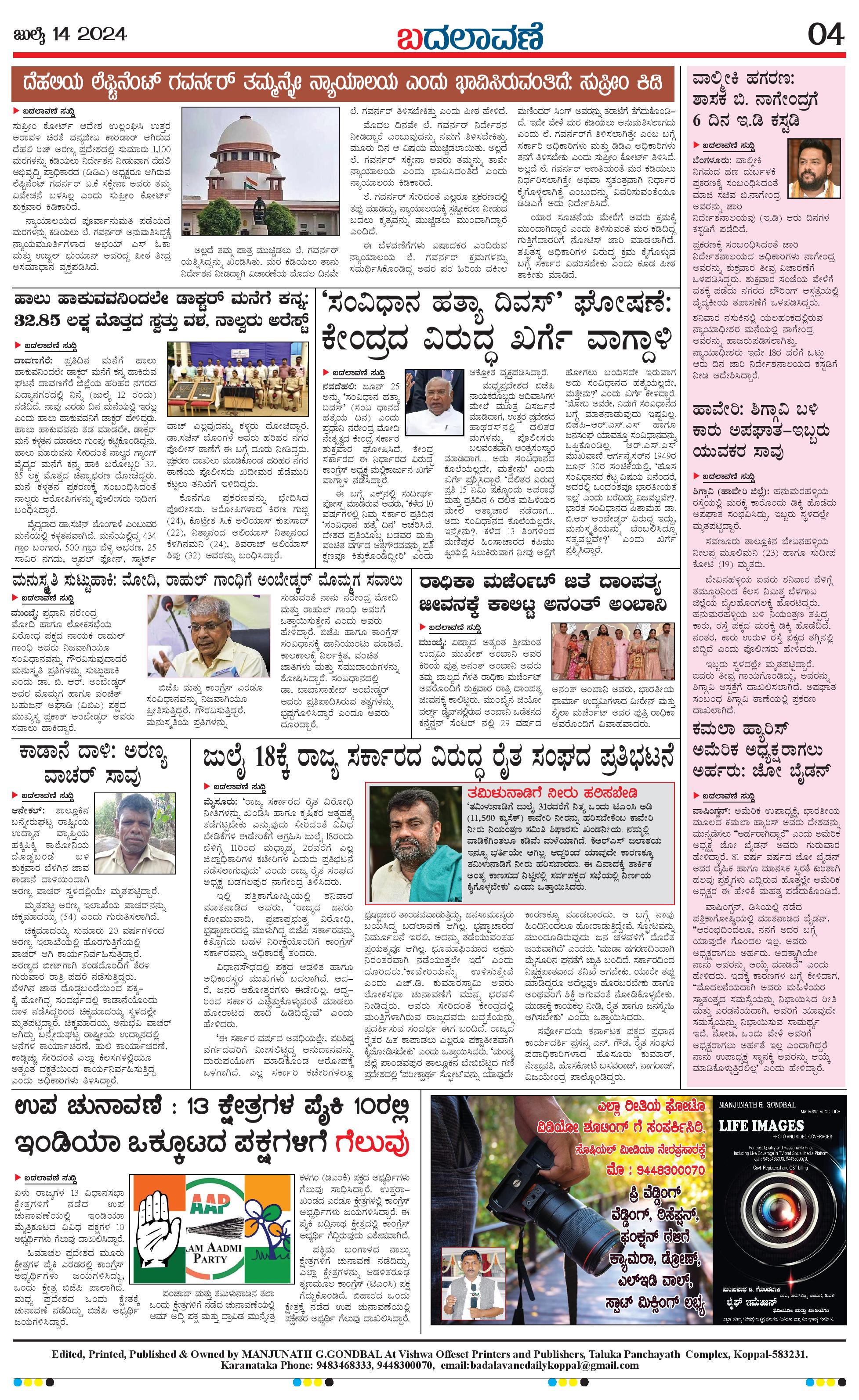 ಬದಲಾವಣೆ 14 July 2024 Page: 4 July 14, 2024 << First << 4 >> Last >> Page 1Page 2Page 3Page 4 × ಬದಲಾವಣೆ 14 July 2024 page-1page-2page-3page-4 << First << 4 >> Last >> page-1page-2page-3page-4 page-4