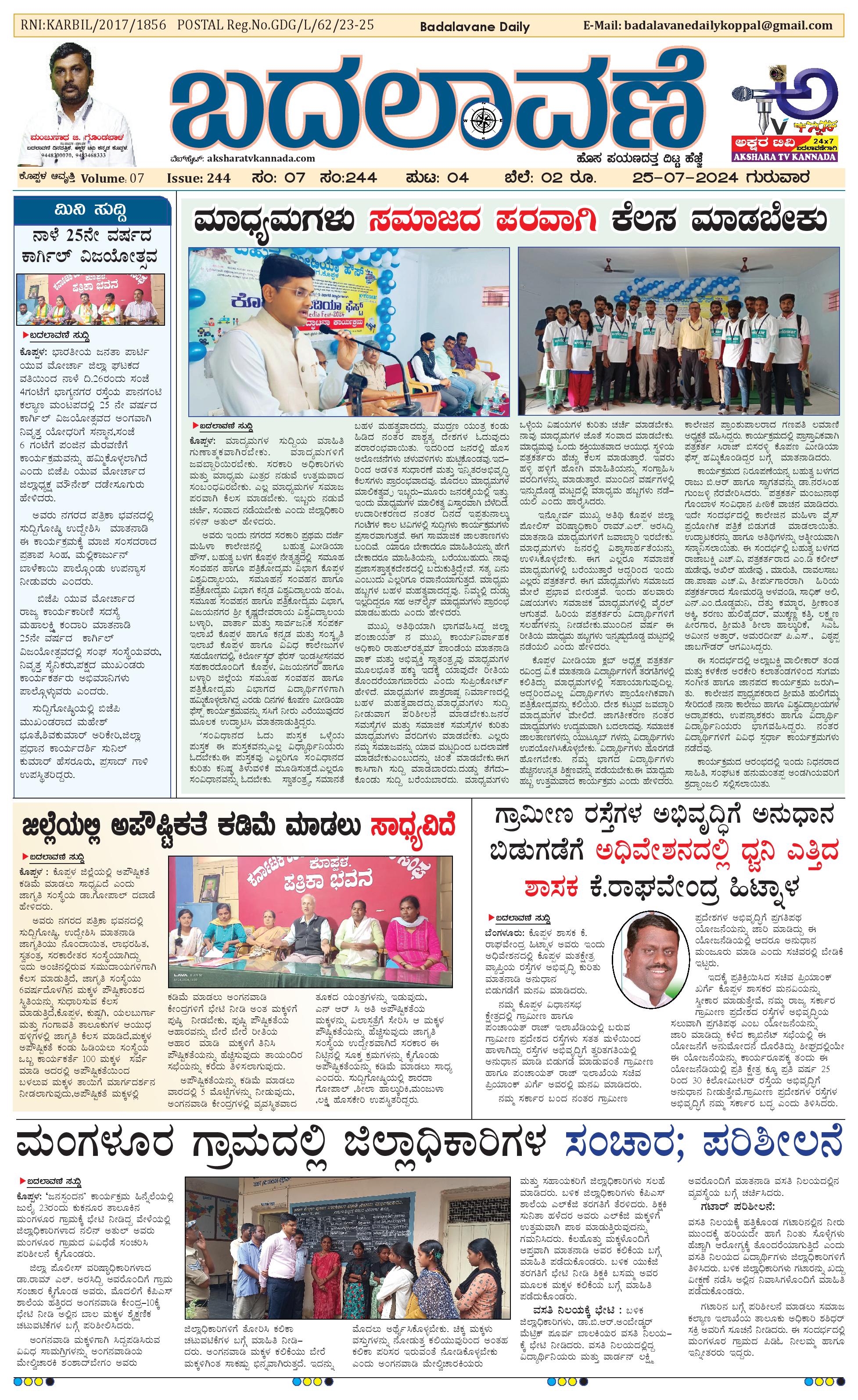 ಬದಲಾವಣೆ 25 July 2024 July 25, 2024 << First << 1 >> Last >> Page 1Page 2Page 3Page 4 × ಬದಲಾವಣೆ 25 July 2024 page-1page-2page-3page-4 << First << 1 >> Last >> page-1page-2page-3page-4 page-1