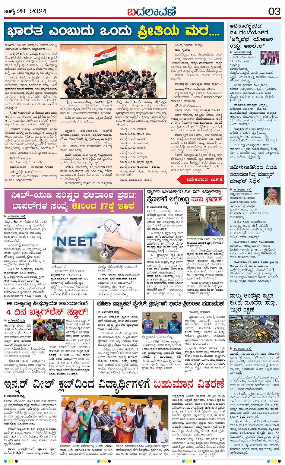 ಬದಲಾವಣೆ 28 July 2024 Page: 3 July 28, 2024 << First << 3 >> Last >> Page 1Page 2Page 3Page 4 × ಬದಲಾವಣೆ 28 July 2024 page-1page-2page-3page-4 << First << 3 >> Last >> page-1page-2page-3page-4 page-3