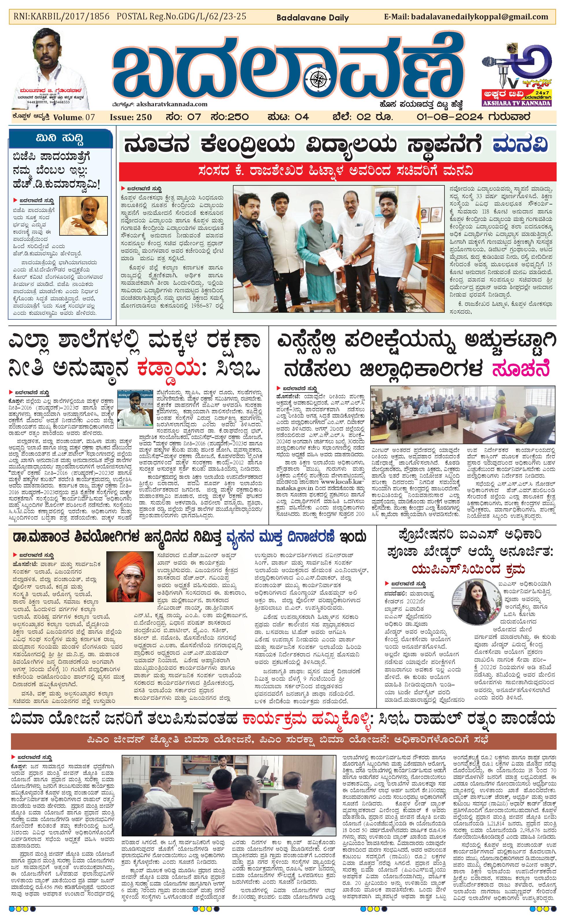 ಬದಲಾವಣೆ 01 August 2024 August 01, 2024 << First << 1 >> Last >> Page 1Page 2Page 3Page 4 × ಬದಲಾವಣೆ 01 August 2024 page-1page-2page-3page-4 << First << 1 >> Last >> page-1page-2page-3page-4 page-1