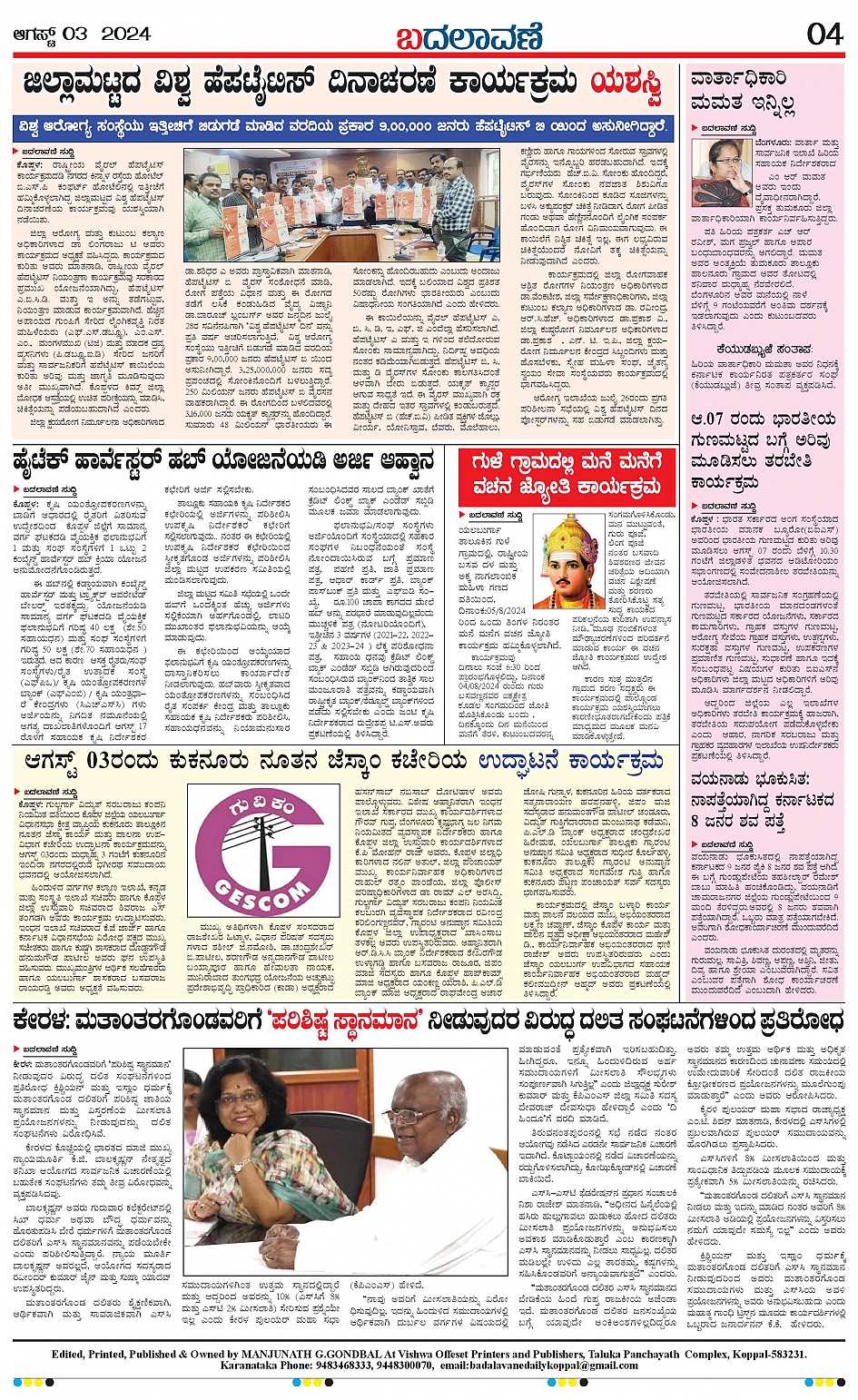 ಬದಲಾವಣೆ 03 August 2024 Page: 4 August 03, 2024 << First << 4 >> Last >> Page 1Page 2Page 3Page 4 × ಬದಲಾವಣೆ 03 August 2024 page-1page-2page-3page-4 << First << 4 >> Last >> page-1page-2page-3page-4 page-4