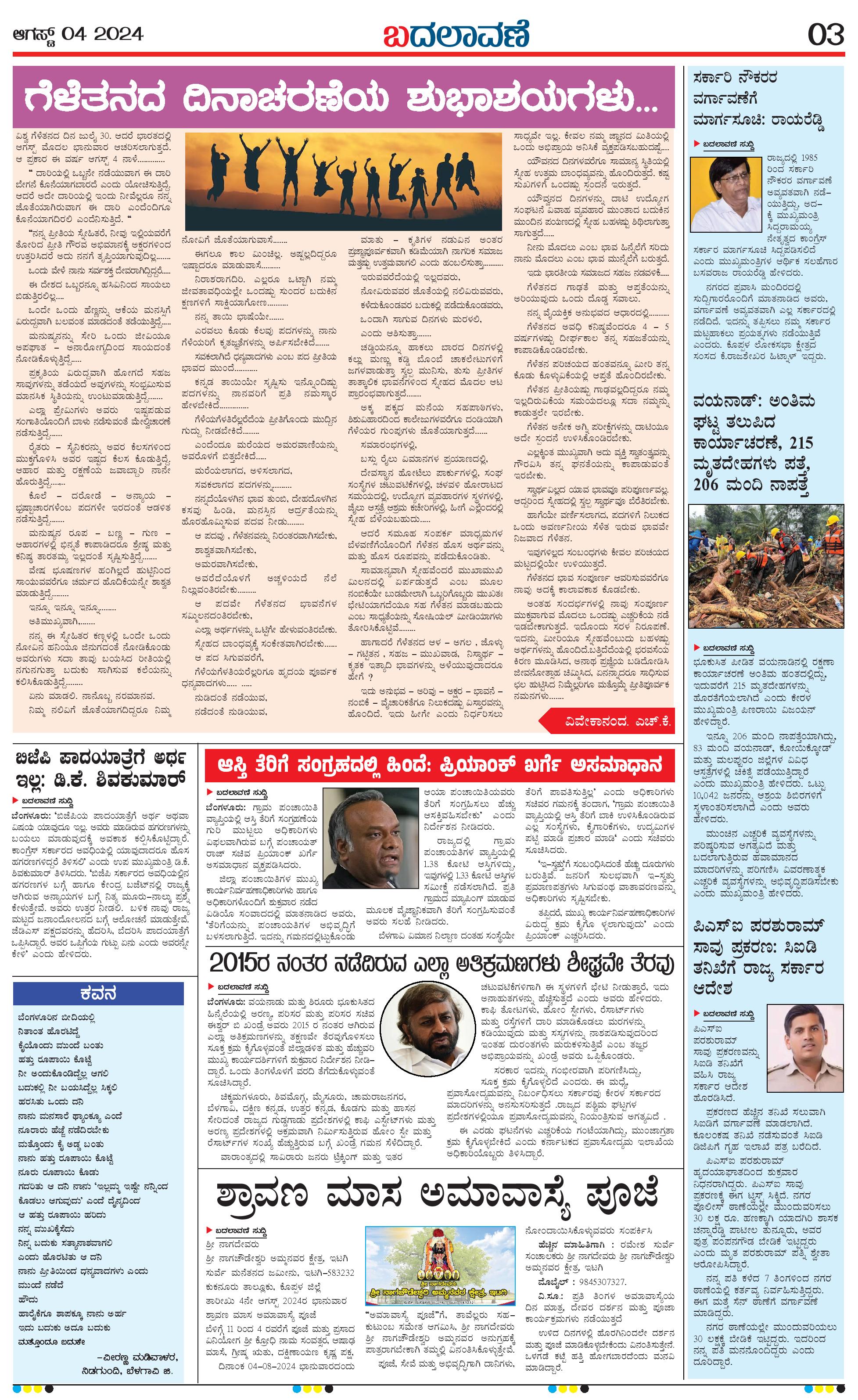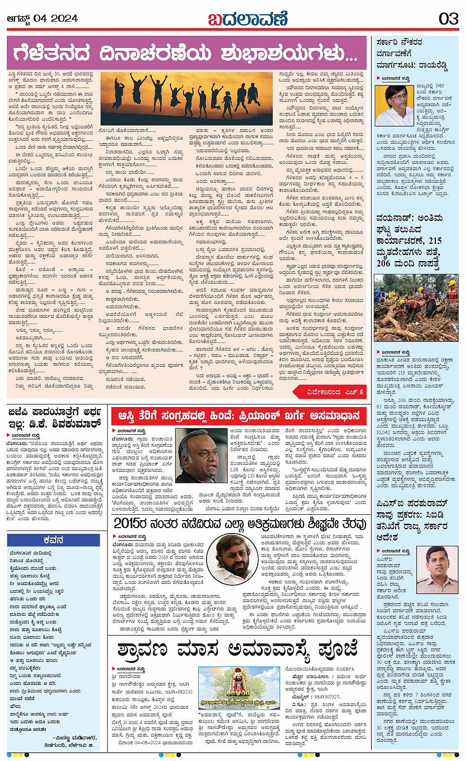 ಬದಲಾವಣೆ 04 August 2024 Page: 3 August 04, 2024 << First << 3 >> Last >> Page 1Page 2Page 3Page 4 × ಬದಲಾವಣೆ 04 August 2024 page-1page-2page-3page-4 << First << 3 >> Last >> page-1page-2page-3page-4 page-3