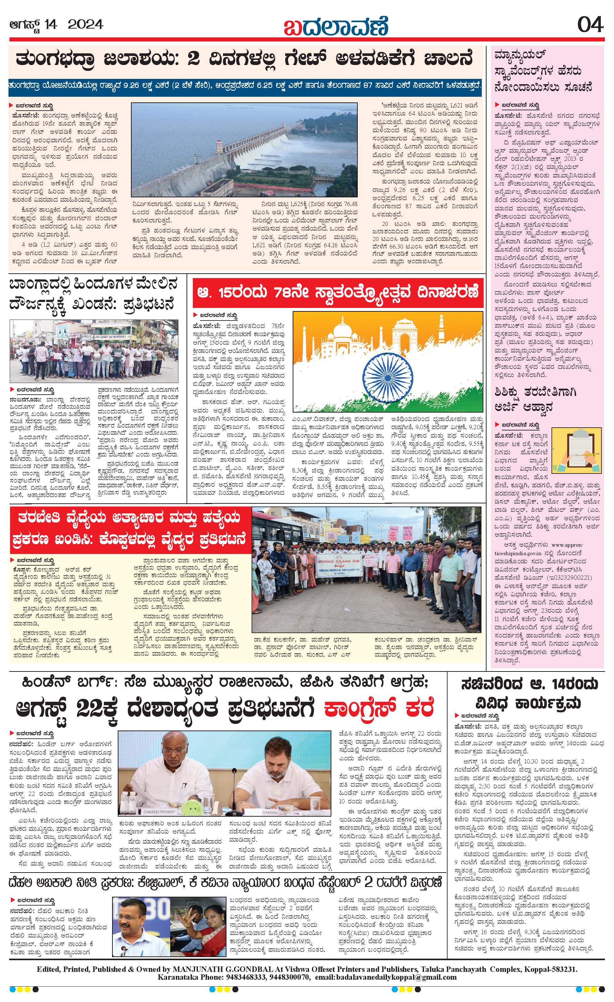 ಬದಲಾವಣೆ 14 August 2024 Page: 4 August 14, 2024 << First << 4 >> Last >> Page 1Page 2Page 3Page 4 × ಬದಲಾವಣೆ 14 August 2024 page-1page-2page-3page-4 << First << 4 >> Last >> page-1page-2page-3page-4 page-4