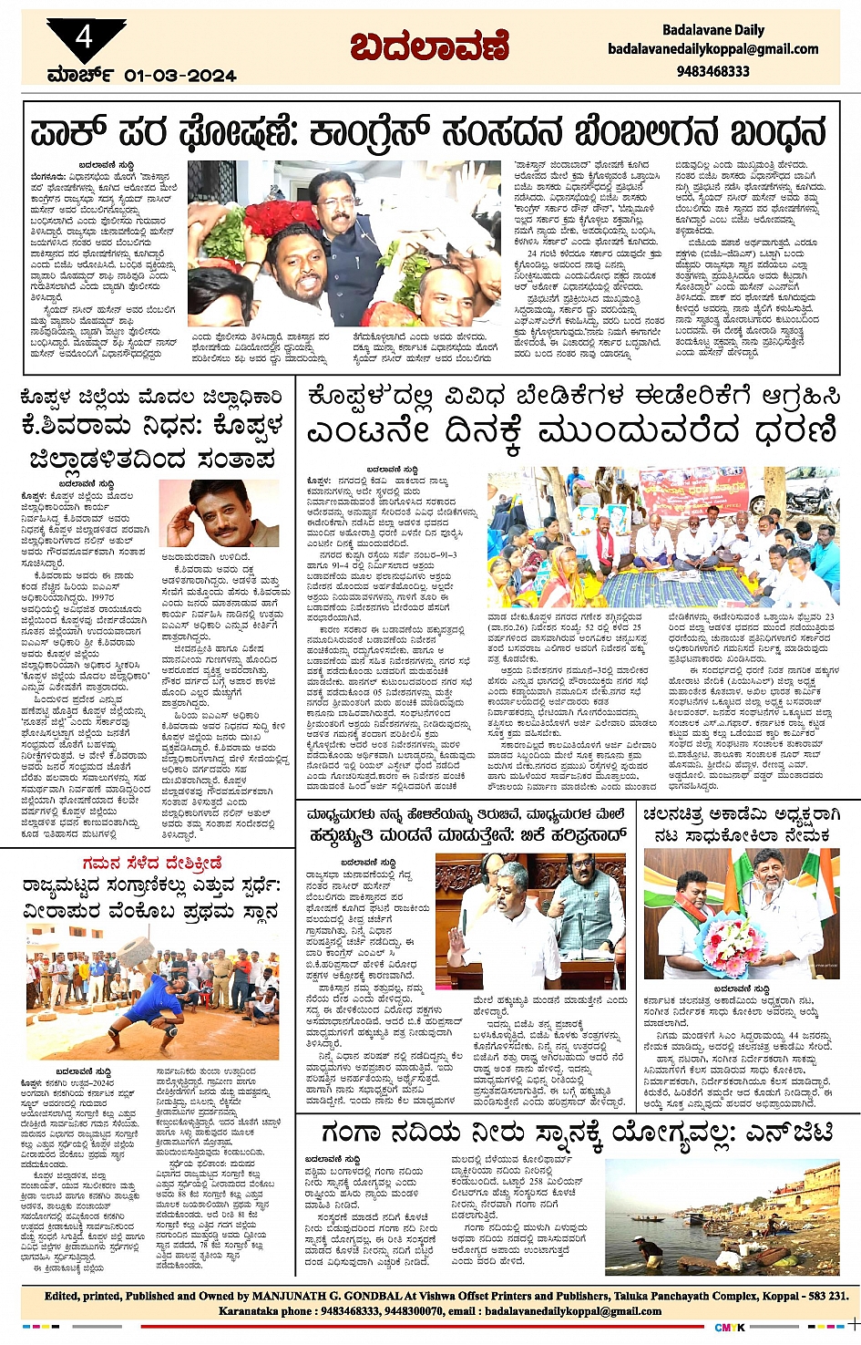 ಬದಲಾವಣೆ 01Mar 2024 Page: 4 March 01, 2024 << First << 4 >> Last >> Page 1Page 2Page 3Page 4 × ಬದಲಾವಣೆ 01Mar 2024 page-1page-2page-3page-4 << First << 4 >> Last >> page-1page-2page-3page-4 page-4