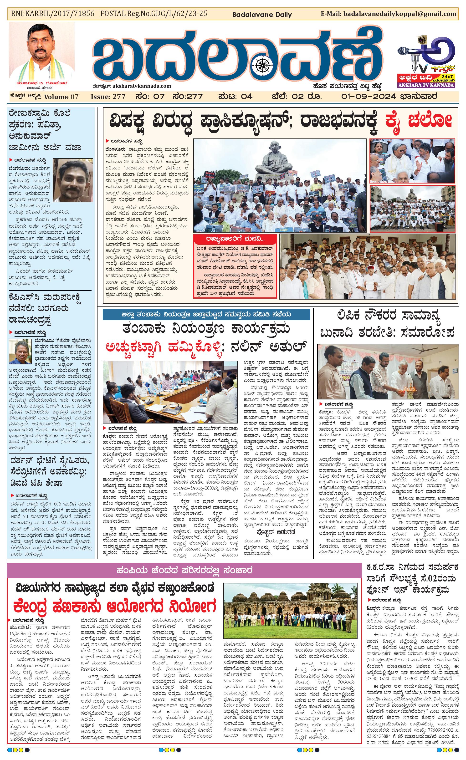 ಬದಲಾವಣೆ 01 September 2024 September 01, 2024 << First << 1 >> Last >> Page 1Page 2Page 3Page 4 × ಬದಲಾವಣೆ 01 September 2024 page-1page-2page-3page-4 << First << 1 >> Last >> page-1page-2page-3page-4 page-1
