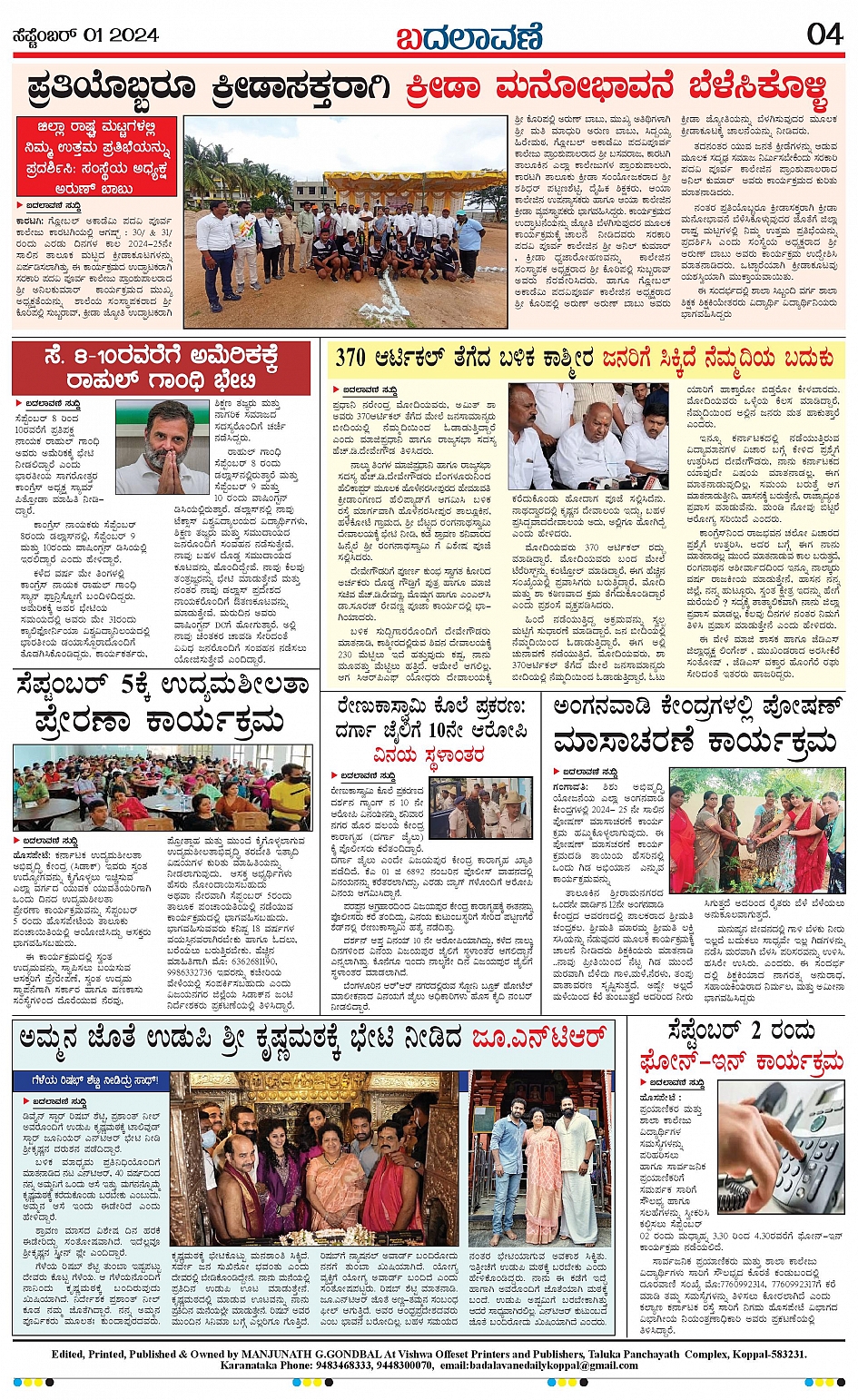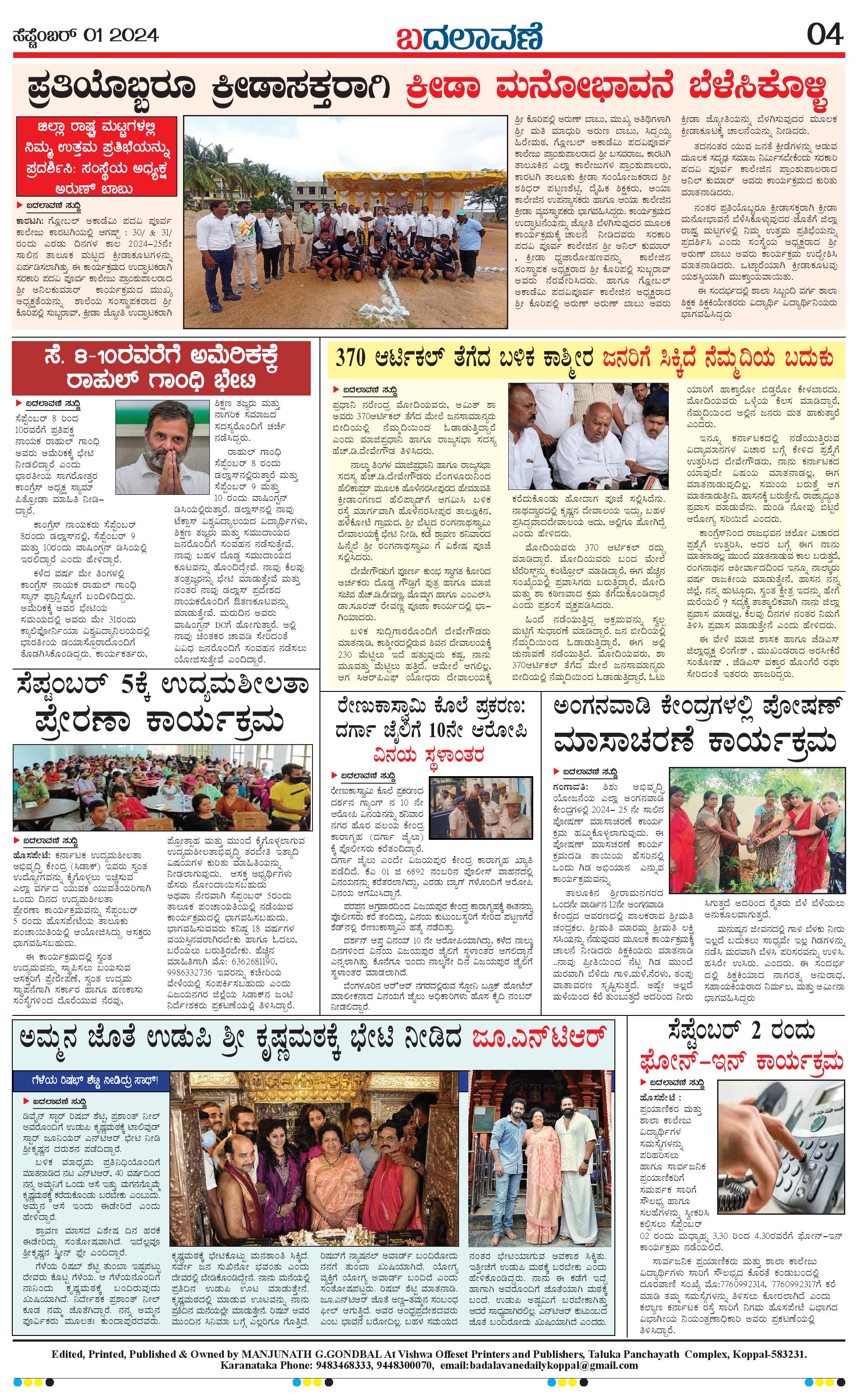 ಬದಲಾವಣೆ 01 September 2024 Page: 4 September 01, 2024 << First << 4 >> Last >> Page 1Page 2Page 3Page 4 × ಬದಲಾವಣೆ 01 September 2024 page-1page-2page-3page-4 << First << 4 >> Last >> page-1page-2page-3page-4 page-4