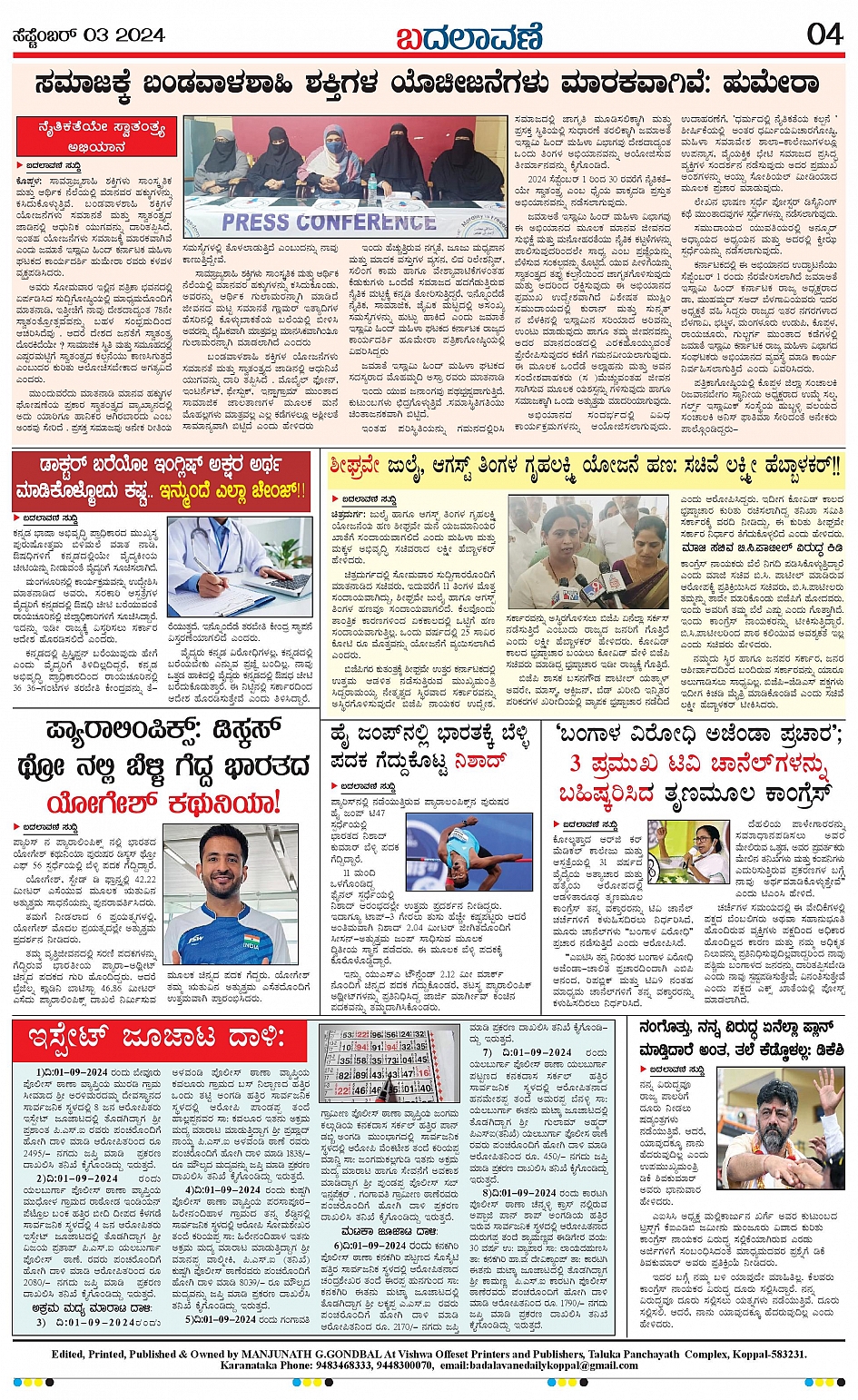 ಬದಲಾವಣೆ 03 September 2024 Page: 4 September 03, 2024 << First << 4 >> Last >> Page 1Page 2Page 3Page 4 × ಬದಲಾವಣೆ 03 September 2024 page-1page-2page-3page-4 << First << 4 >> Last >> page-1page-2page-3page-4 page-4
