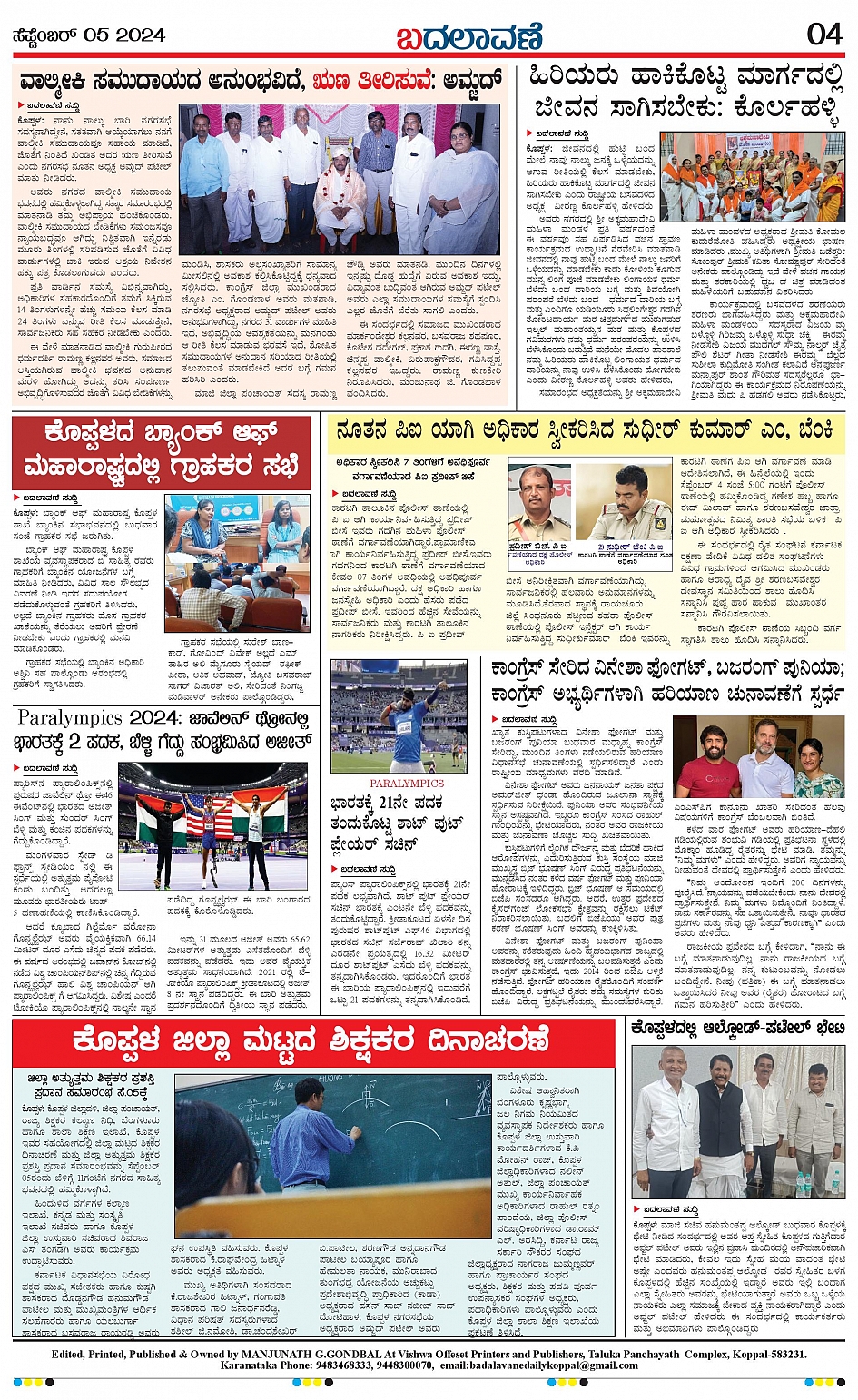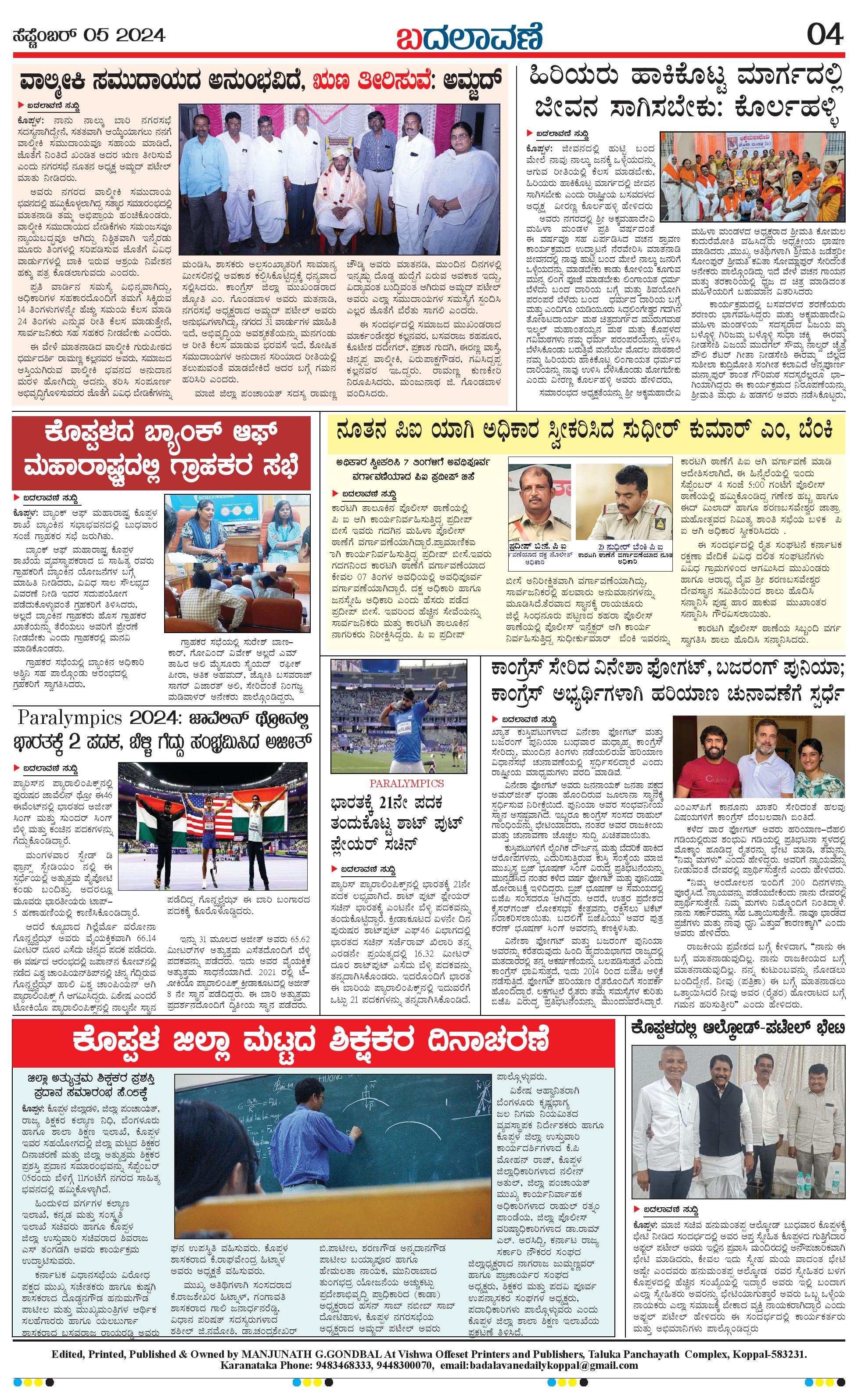 ಬದಲಾವಣೆ 05 September 2024 Page: 4 September 05, 2024 << First << 4 >> Last >> Page 1Page 2Page 3Page 4 × ಬದಲಾವಣೆ 05 September 2024 page-1page-2page-3page-4 << First << 4 >> Last >> page-1page-2page-3page-4 page-4