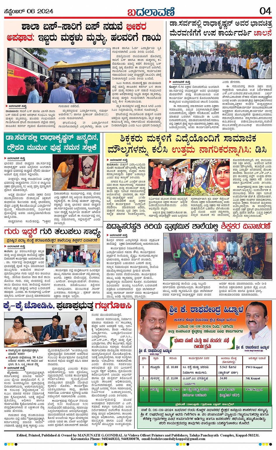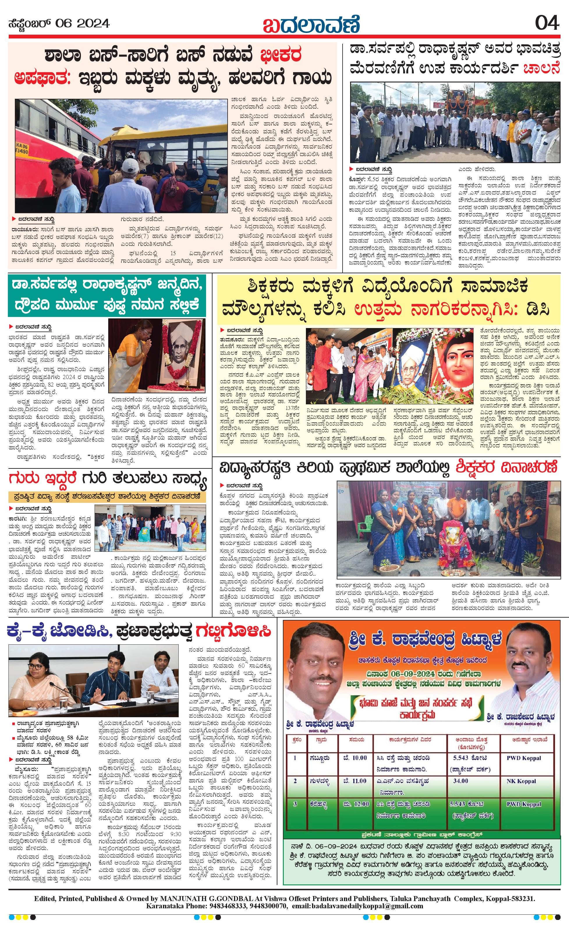 ಬದಲಾವಣೆ 06 September 2024 Page: 4 September 06, 2024 << First << 4 >> Last >> Page 1Page 2Page 3Page 4 × ಬದಲಾವಣೆ 06 September 2024 page-1page-2page-3page-4 << First << 4 >> Last >> page-1page-2page-3page-4 page-4