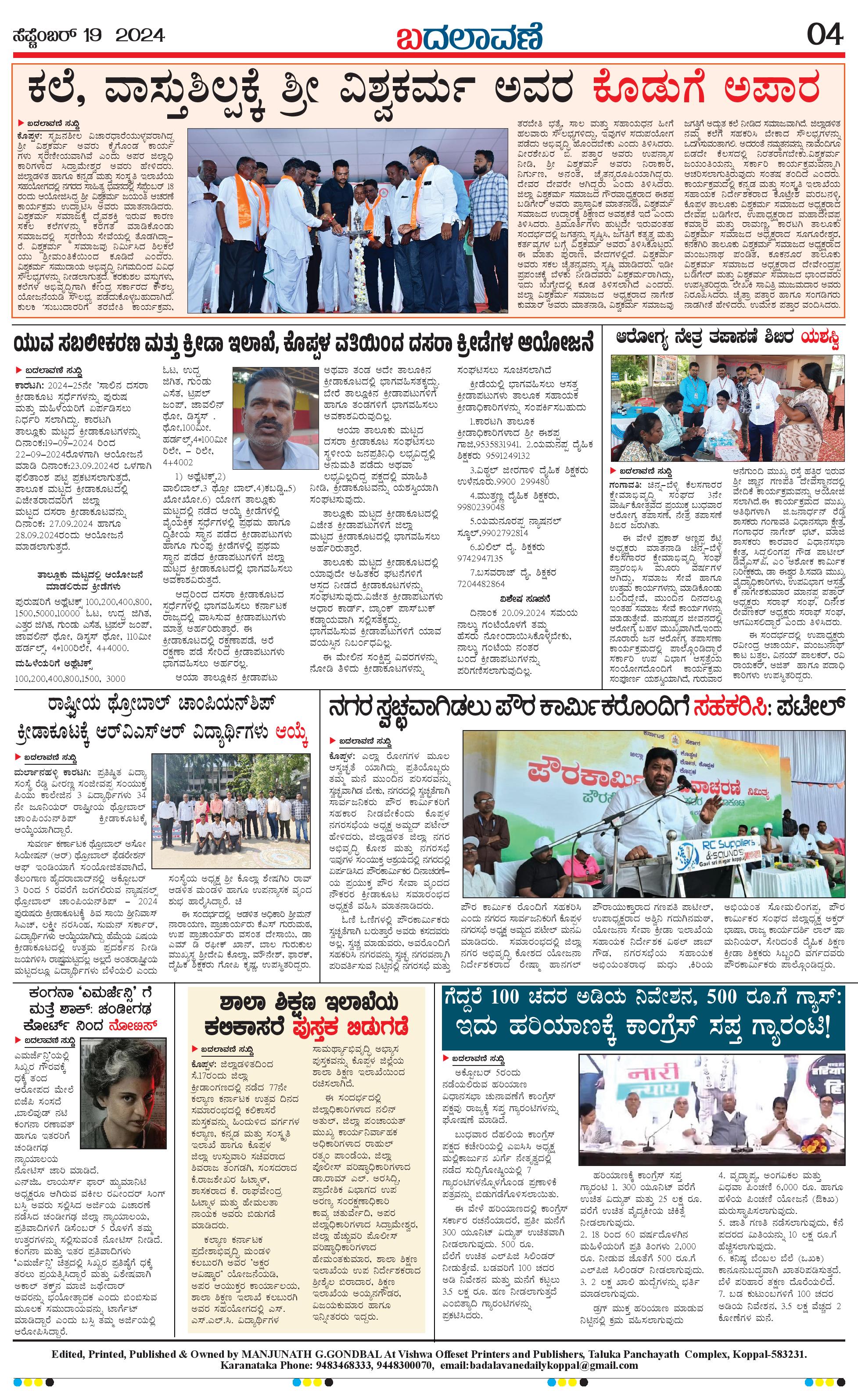 ಬದಲಾವಣೆ 19 September 2024 Page: 4 September 19, 2024 << First << 4 >> Last >> Page 1Page 2Page 3Page 4 × ಬದಲಾವಣೆ 19 September 2024 page-1page-2page-3page-4 << First << 4 >> Last >> page-1page-2page-3page-4 page-4