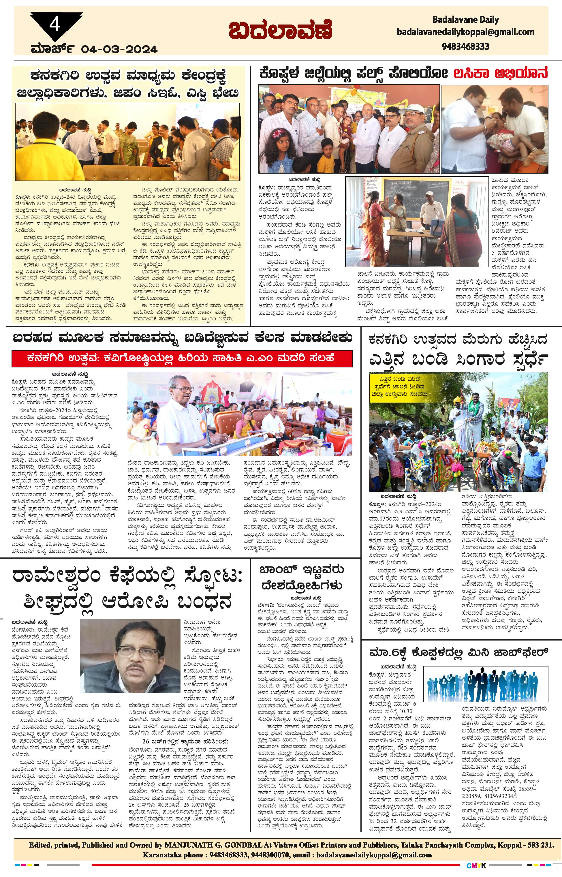 ಬದಲಾವಣೆ 04Mar 2024 Page: 4 March 04, 2024 << First << 4 >> Last >> Page 1Page 2Page 3Page 4 × ಬದಲಾವಣೆ 04Mar 2024 page-1page-2page-3page-4 << First << 4 >> Last >> page-1page-2page-3page-4 page-4
