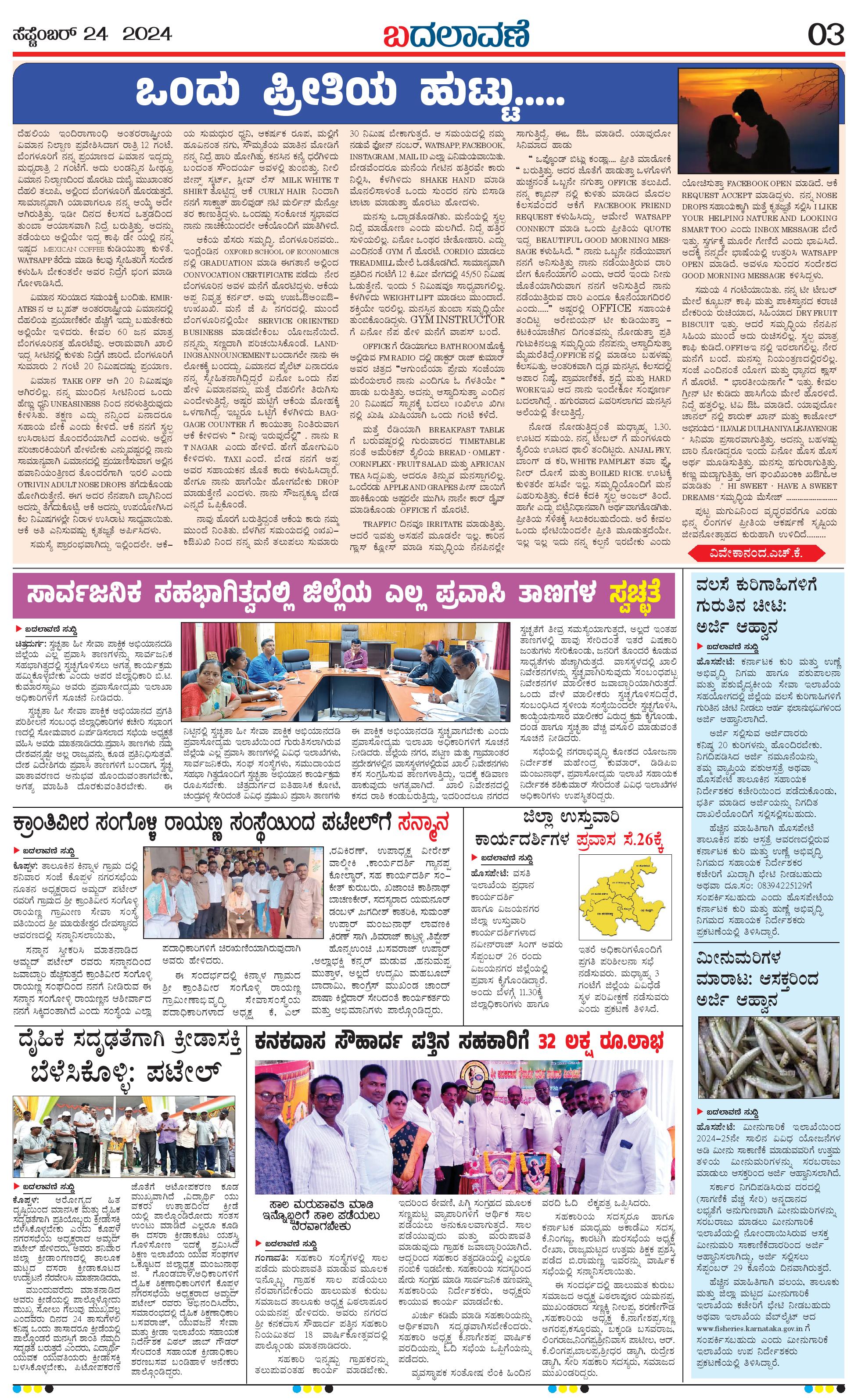 ಬದಲಾವಣೆ 24 September 2024 Page: 3 September 24, 2024 << First << 3 >> Last >> Page 1Page 2Page 3Page 4 × ಬದಲಾವಣೆ 24 September 2024 page-1page-2page-3page-4 << First << 3 >> Last >> page-1page-2page-3page-4 page-3