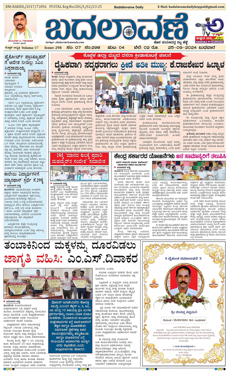 ಬದಲಾವಣೆ 25 September 2024 September 25, 2024 << First << 1 >> Last >> Page 1Page 2Page 3Page 4 × ಬದಲಾವಣೆ 25 September 2024 page-1page-2page-3page-4 << First << 1 >> Last >> page-1page-2page-3page-4 page-1
