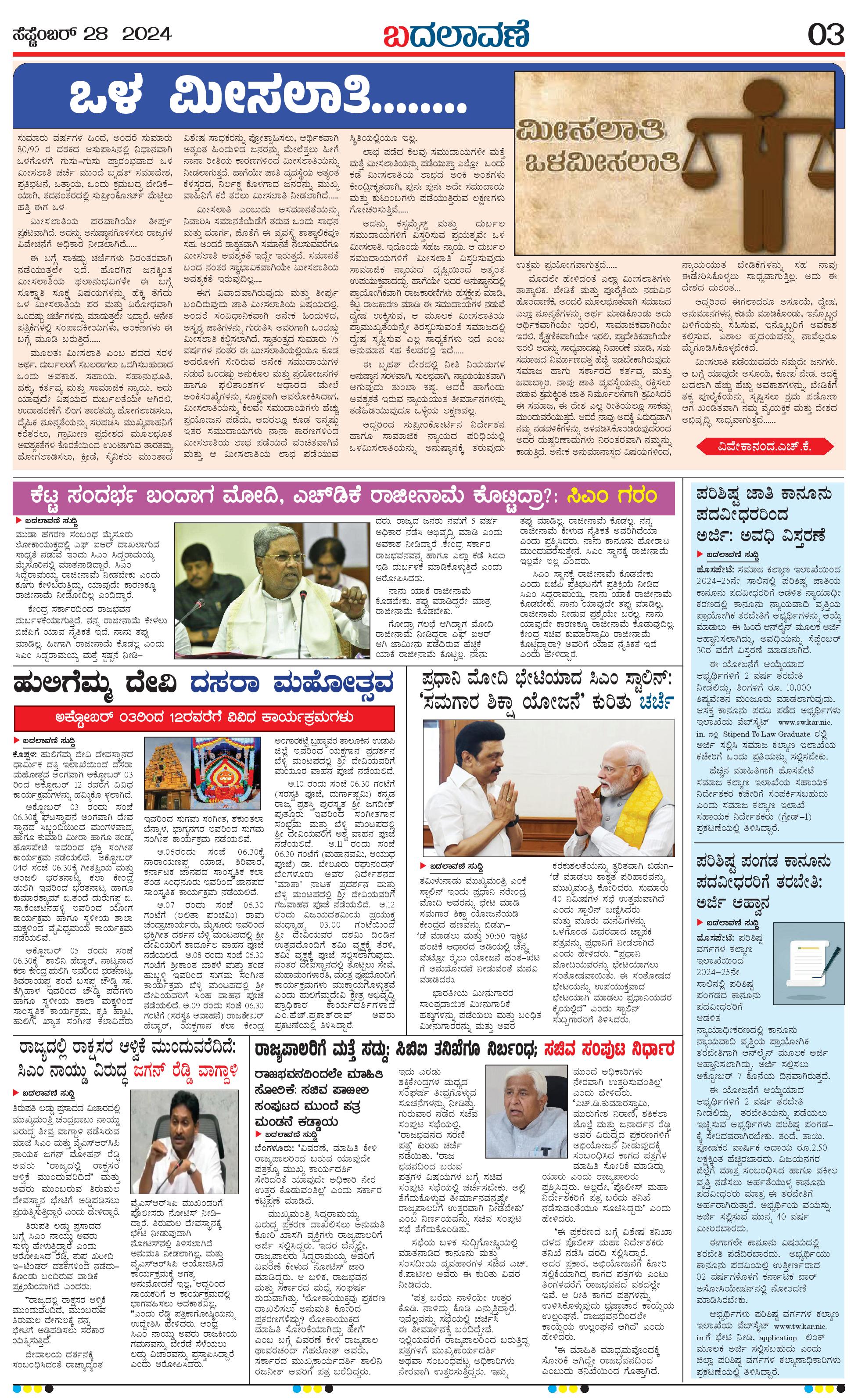 ಬದಲಾವಣೆ 28 September 2024 Page: 3 September 28, 2024 << First << 3 >> Last >> Page 1Page 2Page 3Page 4 × ಬದಲಾವಣೆ 28 September 2024 page-1page-2page-3page-4 << First << 3 >> Last >> page-1page-2page-3page-4 page-3